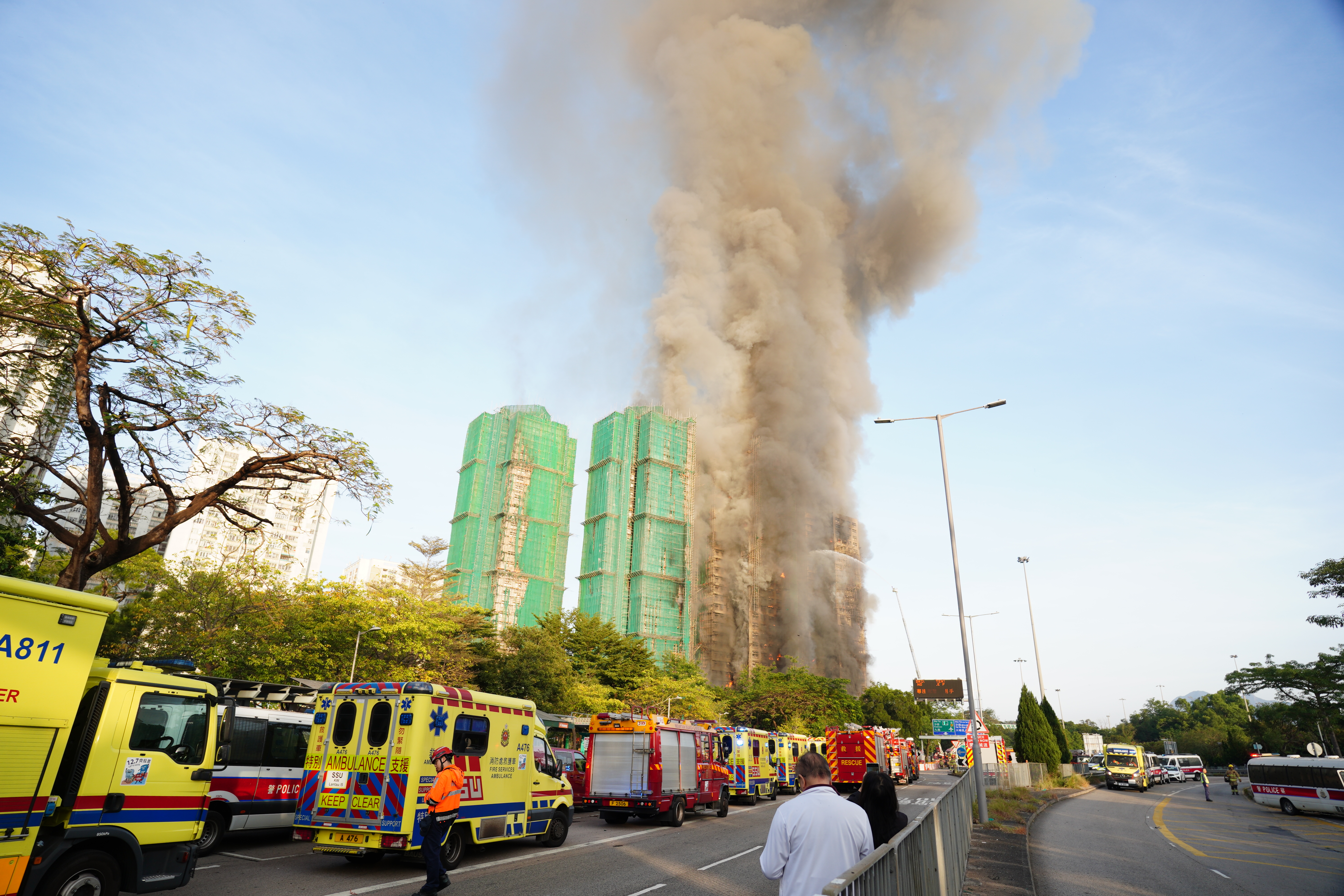 警方表示,下午近3時接獲途人報案,指大廈的外牆棚架起火,之後陸續收到許多住客報案指在單位內未能逃生,包括宏昌閣、宏泰閣及宏新閣。宏福苑共有8幢大廈,翻查業主立案法團資料,屋苑正進行大維修,包括進行外牆批盪噴漿。