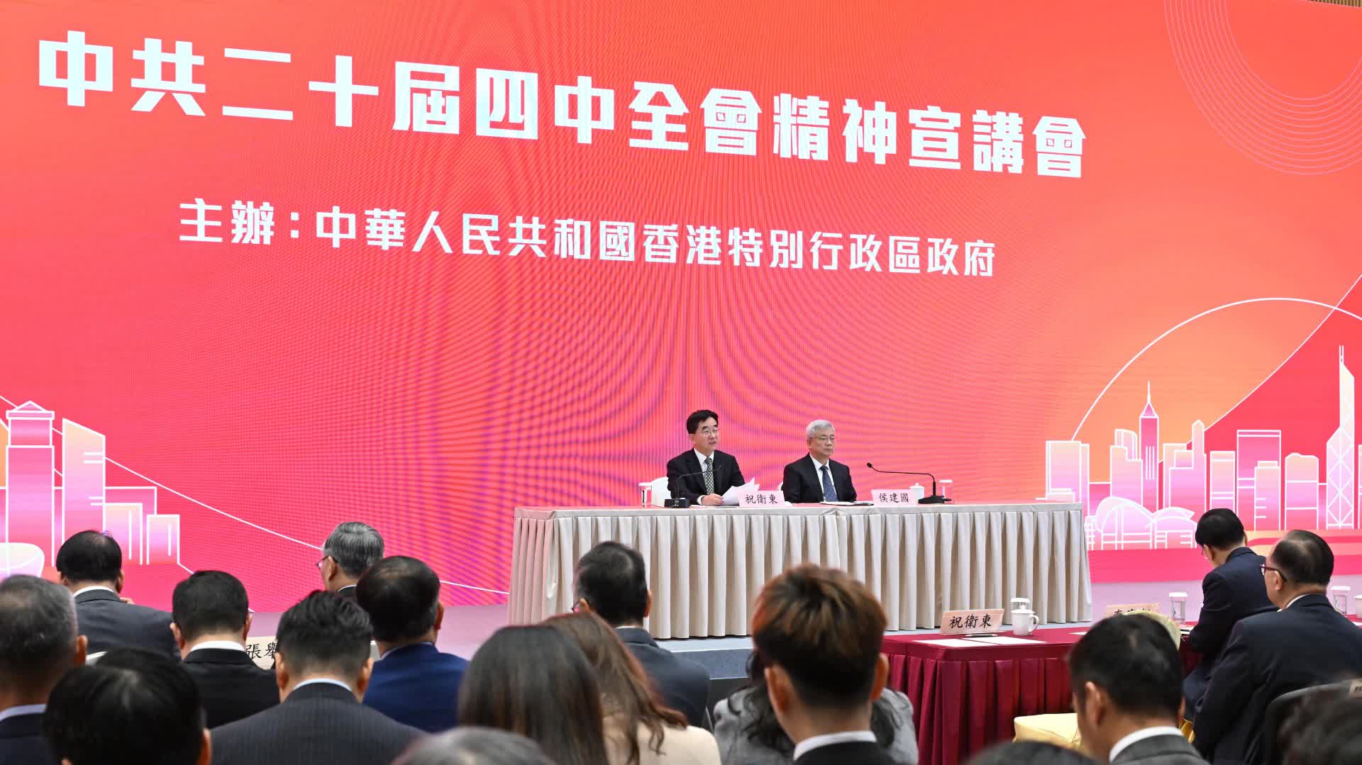 三場中共二十屆四中全會精神宣講會在香港舉辦,特別是11月25日上午的宣講會通過特區政府網站、香港電台全程直播,為香港社會帶來一股凝心聚力的思想熱潮。宣講團不僅深入解讀全會精神,更走進北部都會區,與創科企業代表交流,彰顯中央對香港發展的深切關懷與殷切期望。
