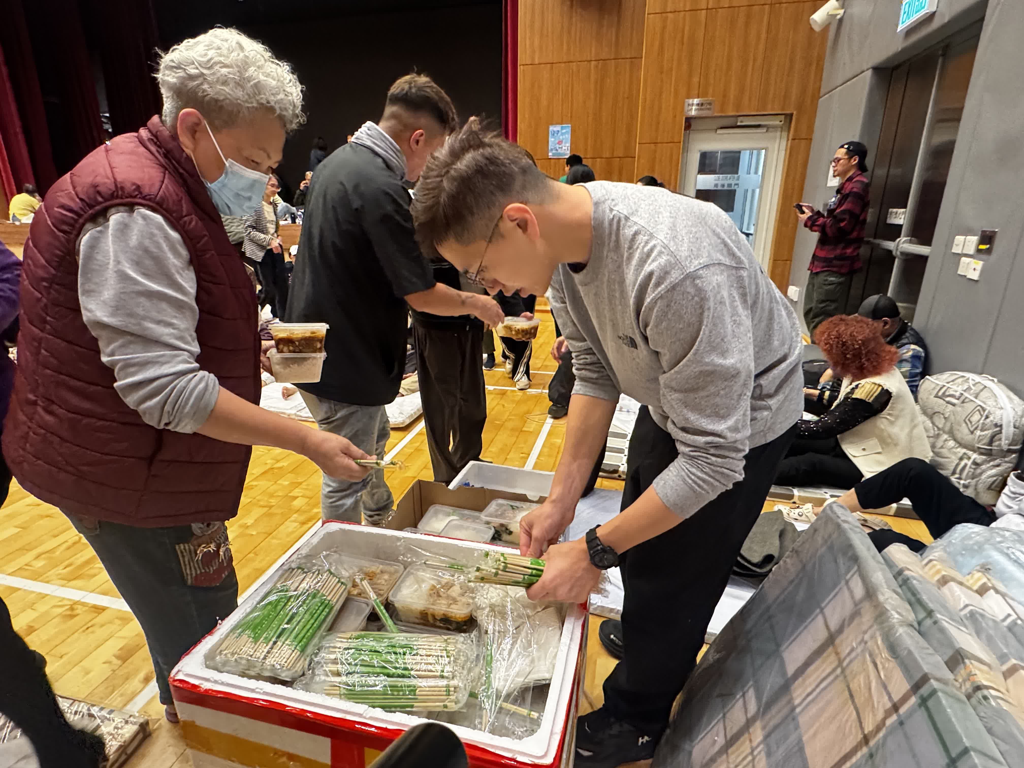 現場所見,社區會堂提供水、杯麵和床墊等基本物資,亦有街坊自費為來前來庇護的居民購買盒飯當作晚餐。在東昌街社區會堂庇護中心,居民普遍表達無助與焦慮。其中不少人都戴著口罩,仍能看出紅了眼圈。居民周小姐表示,宏福苑的8棟樓宇每棟有31層,每層8戶,此次火災或涉及1900多戶家庭。