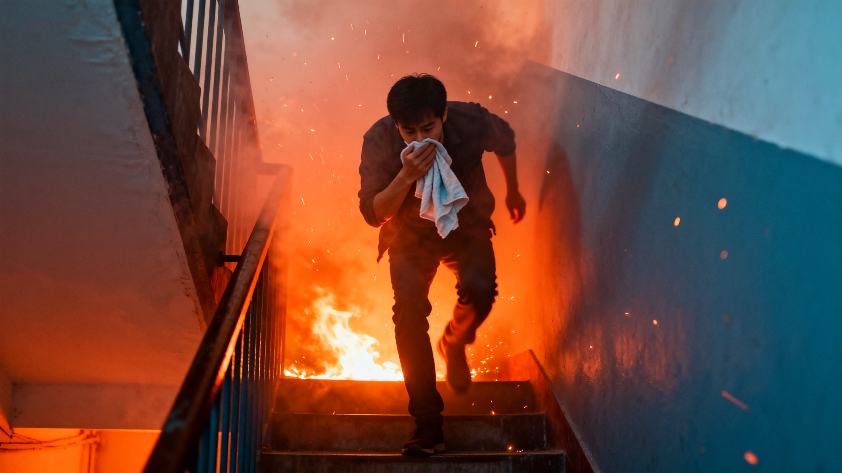 二、高樓火災中致死,大部分情況下是吸入濃煙導致窒息,火災發生後,會有大量一氧化碳等有毒氣體釋放。逃生時如果經過充滿煙霧的通道,一定要用濕口罩、濕毛巾等物品捂住口鼻,避開煙氣,預防煙霧中毒和窒息。在通過濃烈火焰區域時,一定要學會暫時屏住呼吸,這也是避免有毒氣體吸入導致肺部損傷的舉措。因煙霧較空氣輕而飄於上部,貼近地面的煙氣較少,所以低姿態彎腰前行是撤離的最佳方法,避開上方濃煙,沿着牆壁邊緣逃生,容易辨清方向。逃離火場時,帶孩子的人要把孩子抱着走,不能拉着孩子跑。