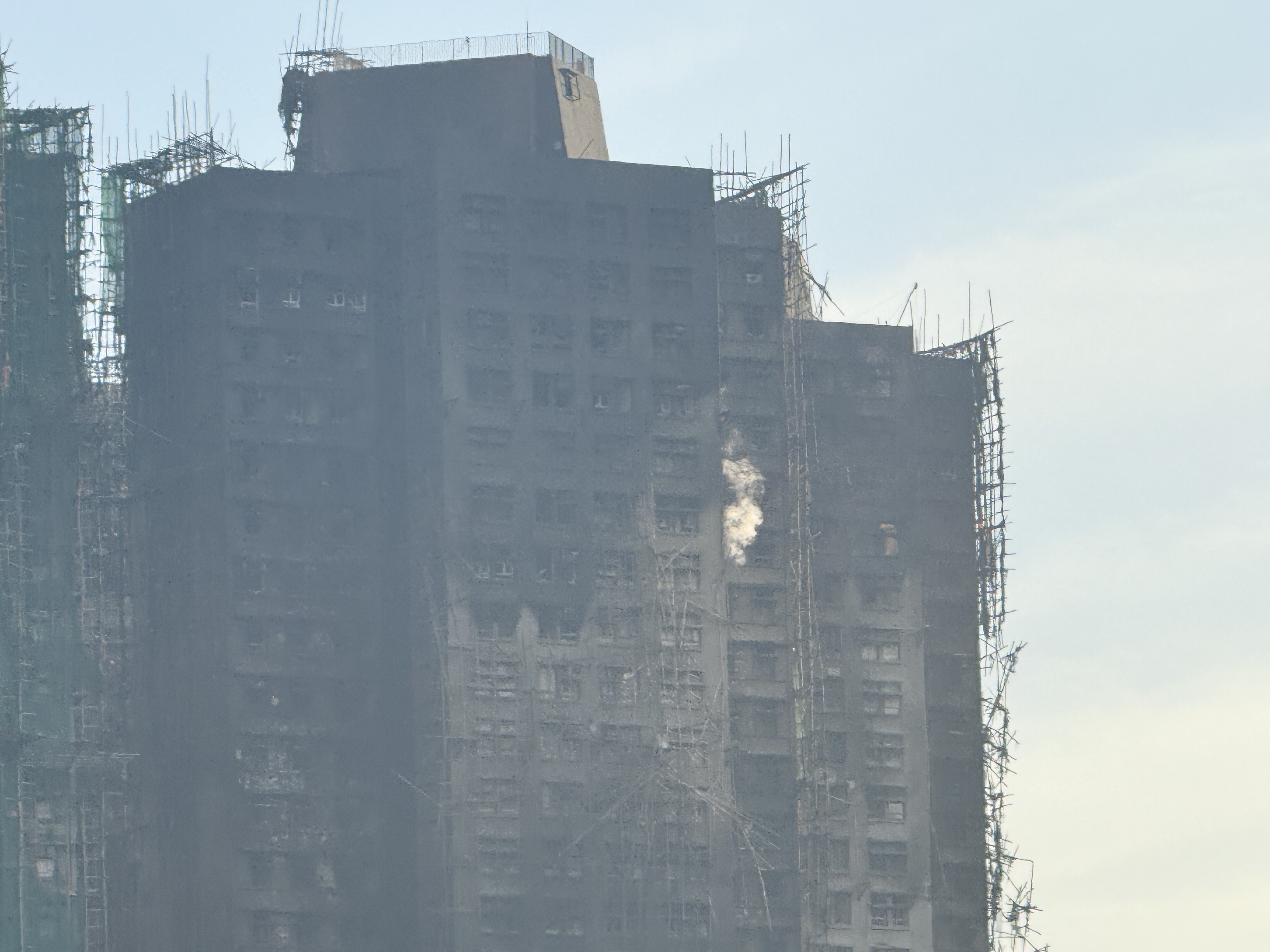 大公文匯全媒體記者今早約8時抵達宏福苑火警現場附近,從大埔墟港鐵站方向觀察,樓體已無明顯火舌,現場煙霧亦較昨日大幅減退,僅餘一處窗口仍有少量煙霧冒出。消防處預計今早9時可完成宏福苑7座所有單位的破門搜索工作。