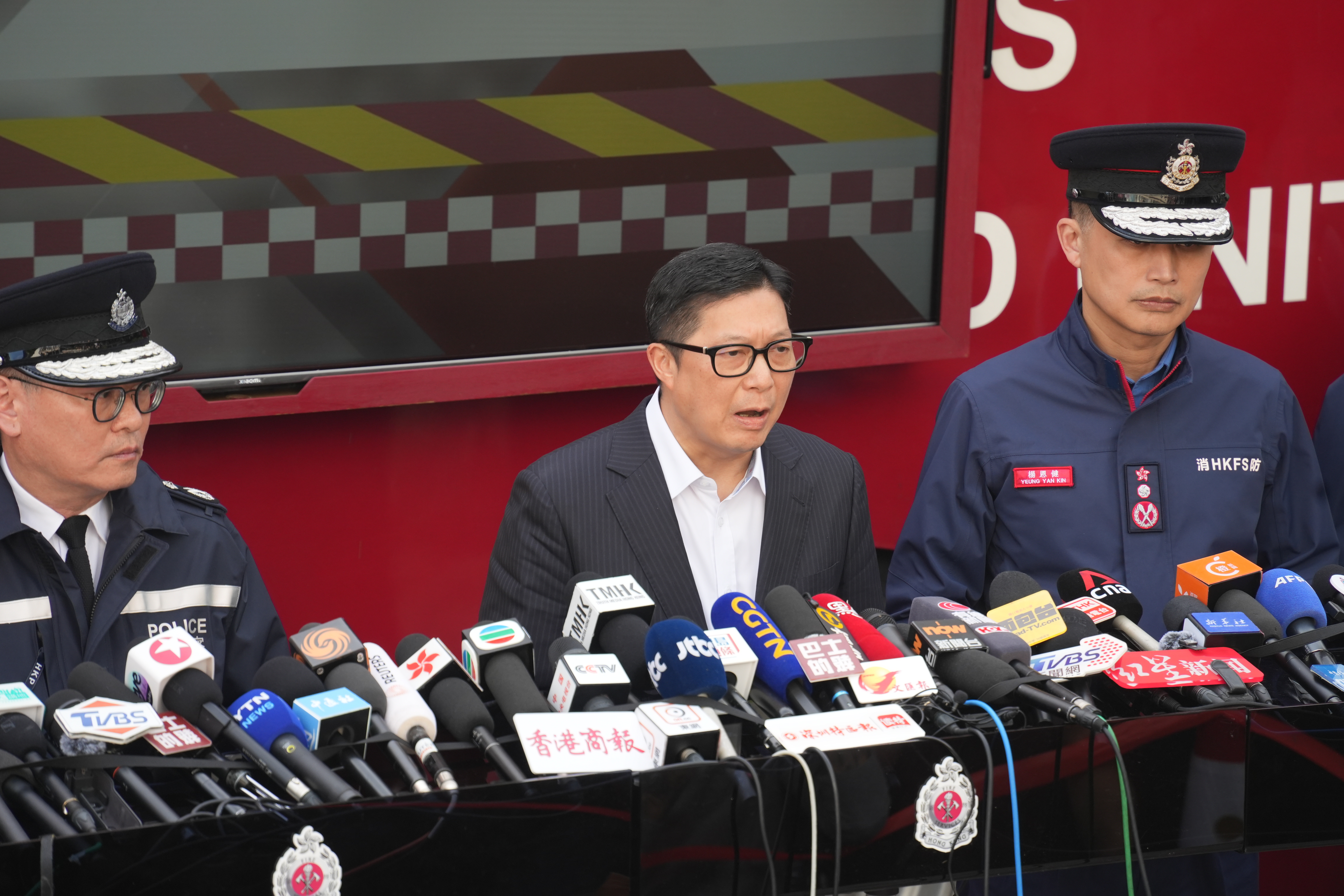 大公文匯全媒體報道,消防處今日(28日)下午舉行記者會,簡報大埔宏福苑五級火最新救援情況。保安局局長鄧炳強首先對大埔宏福苑發生嚴重火警的所有死傷人士,包括殉職的消防員以及他們所有的家人,致以最深切的哀悼和慰問。