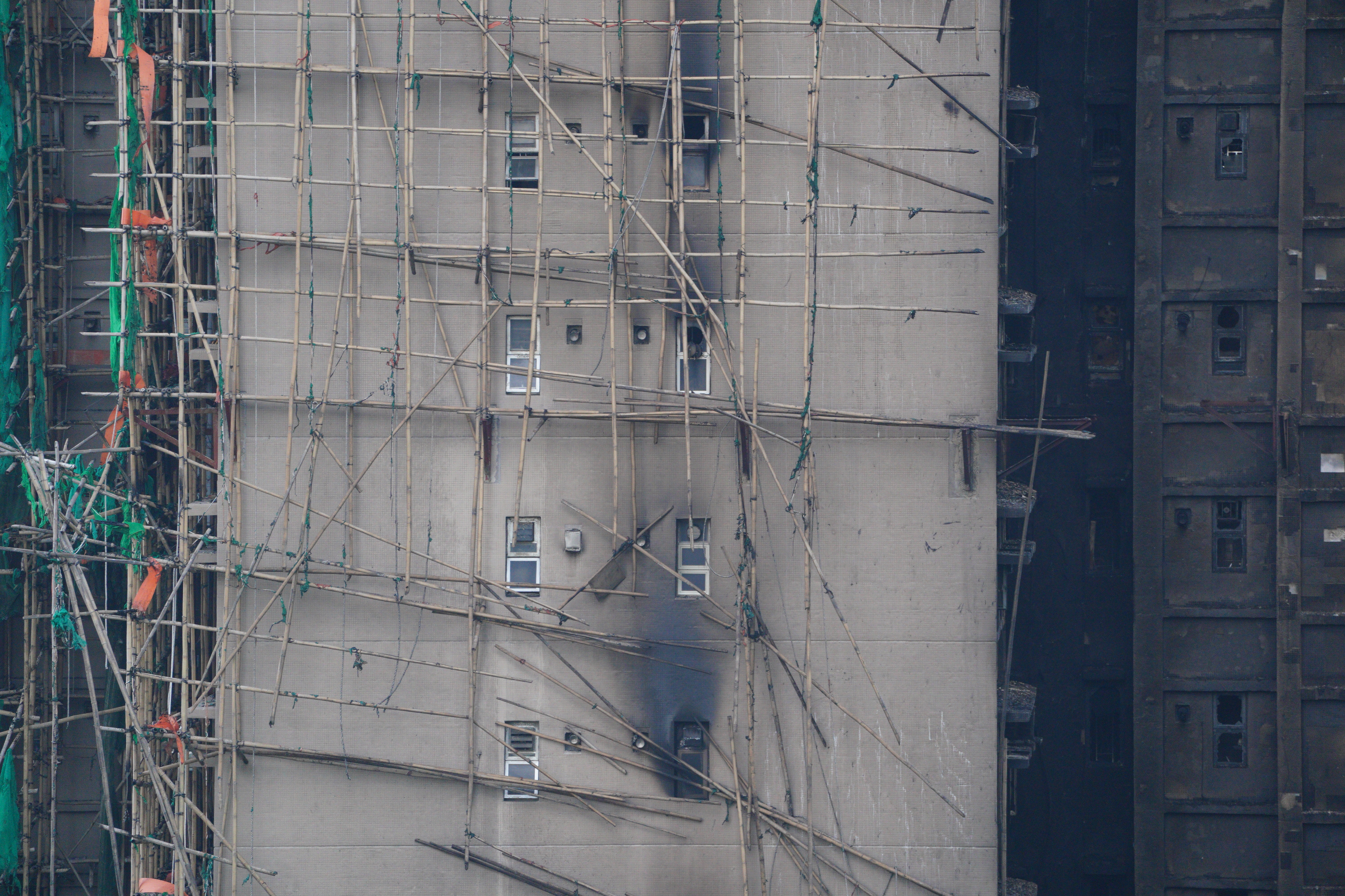 大公文匯全媒體記者現場觀察到,部分單位窗戶上貼的發泡膠板清晰可見,有單位窗戶因燃燒的發泡膠板爆破後,燒到熏黑,外牆立面受損。資深電機及屋宇裝備工程師何永業指出,長時間高溫焚燒會令大廈石屎鋼筋強度下降,對樓宇結構安全構成隱憂。
