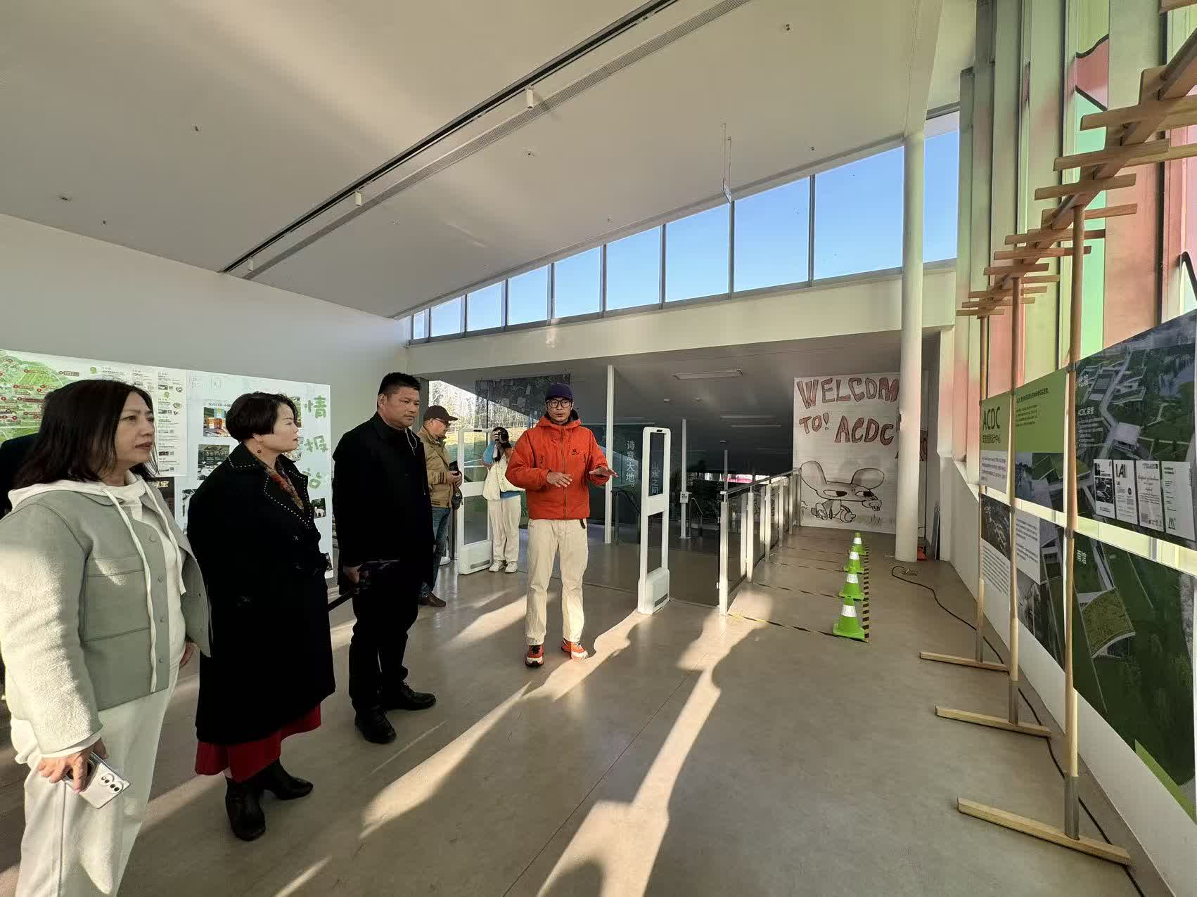採風團踏入建築內,可見南區為公共區域,內設5個專業展廳、ACDC兒童創意空間、ACDC商店。中區為ACDC小鹿園,多隻梅花鹿正愜意地踱步在藍天白雲之。在北區,設有專業設計圖書館、ACDC FAB LAB創意實驗室以及設備齊全的共享辦公區與多功能廳。