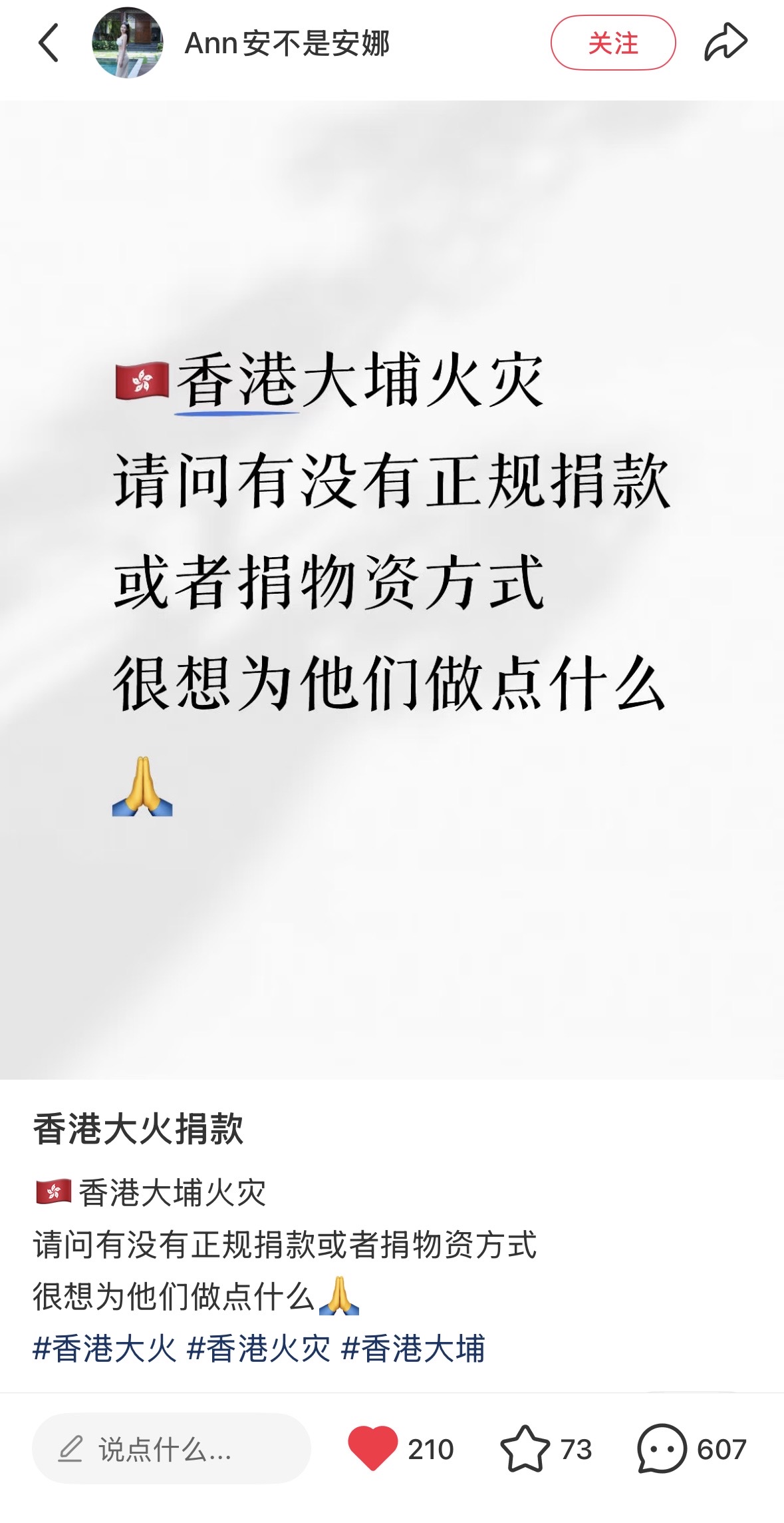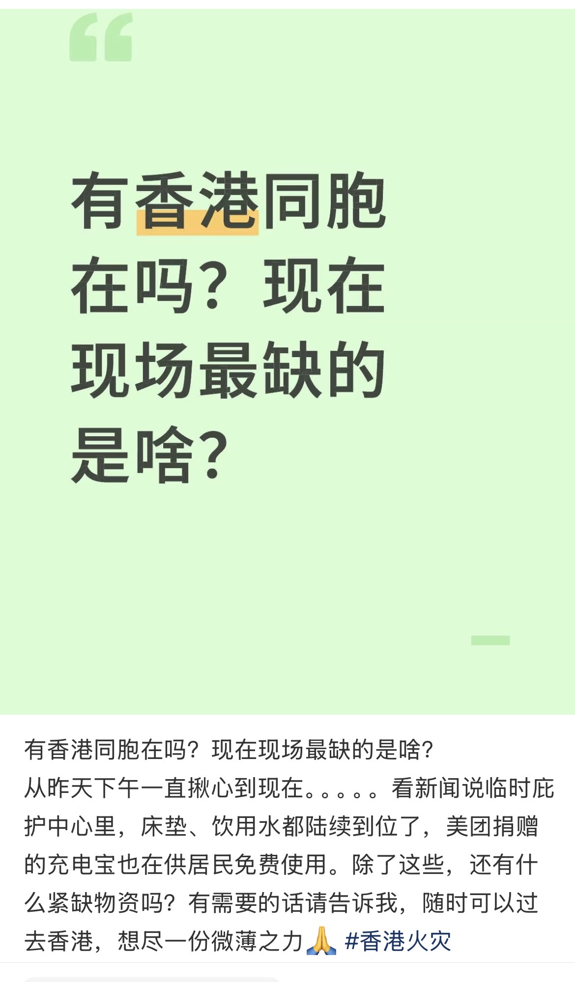 (大公文匯網記者 盧靜怡 廣州報道)「尋找給香港捐款的官方渠道,很想為他們做點什麼」「我想為香港捐款,可以怎麼做?」「有香港同胞嗎?你們現在最缺什麼?」香港大埔宏福苑發生大火的消息,連日來持續牽動着內地民眾的心,各類飽含牽掛的聲援帖文,在內地社交網絡上不斷湧現。災情發生後,內地網友的愛心迅速凝聚,大家紛紛主動探尋捐贈渠道,用實際行動支援香港。