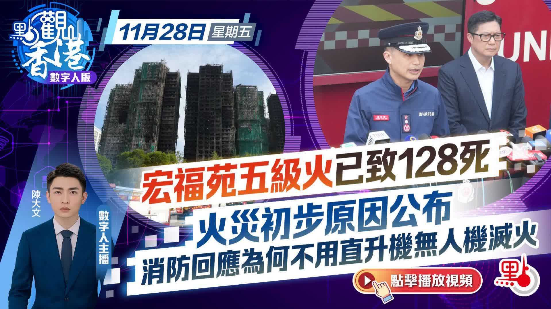 大公文匯全媒體報道,今天我們重點關注大埔宏福苑五級火。大埔宏福苑前日(26日)發生五級大火,火勢蔓延至7座大廈,釀成嚴重傷亡。特區政府今日(28日)下午舉行記者會公布,火災目前已造成128人遇難,包括108名在現場移送出來的遺體,有4人送院後不治,亦有16具燒焦的遺體仍在大廈內。128名死者當中,有39名已經確認身份。失蹤人士方面,還有約200人情況未明,當中包括89具未能辨認的遺體。當局不排除稍後在警方進入大廈進行詳細的調查和搜證之後,有機會另外發現燒焦的遺體。