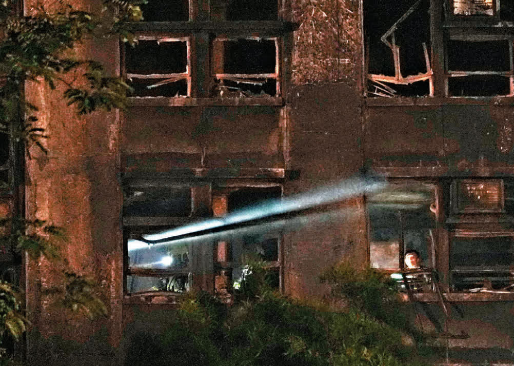凌晨時分,大公報記者在現場所見,黑暗中的宏福苑不時有燈光閃爍,這是消防員在逐間搜索。特區政府對於傷者救治、善後支援、事故調查等工作仍在加緊推進……消防部門預計今日早上9時將完成7座大廈全部單位的爆破搜索工作。