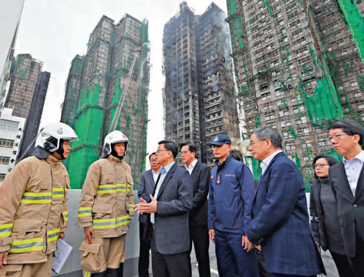 李家超昨天宣布成立包括調查及規管、緊急支援及募捐、應急住宿安排在內的三個工作組,全方位推進救援及善後工作,並即時向大埔宏福苑每戶災民派發一萬元應急補助金。他呼籲大家「堅強面對,共渡時艱」!