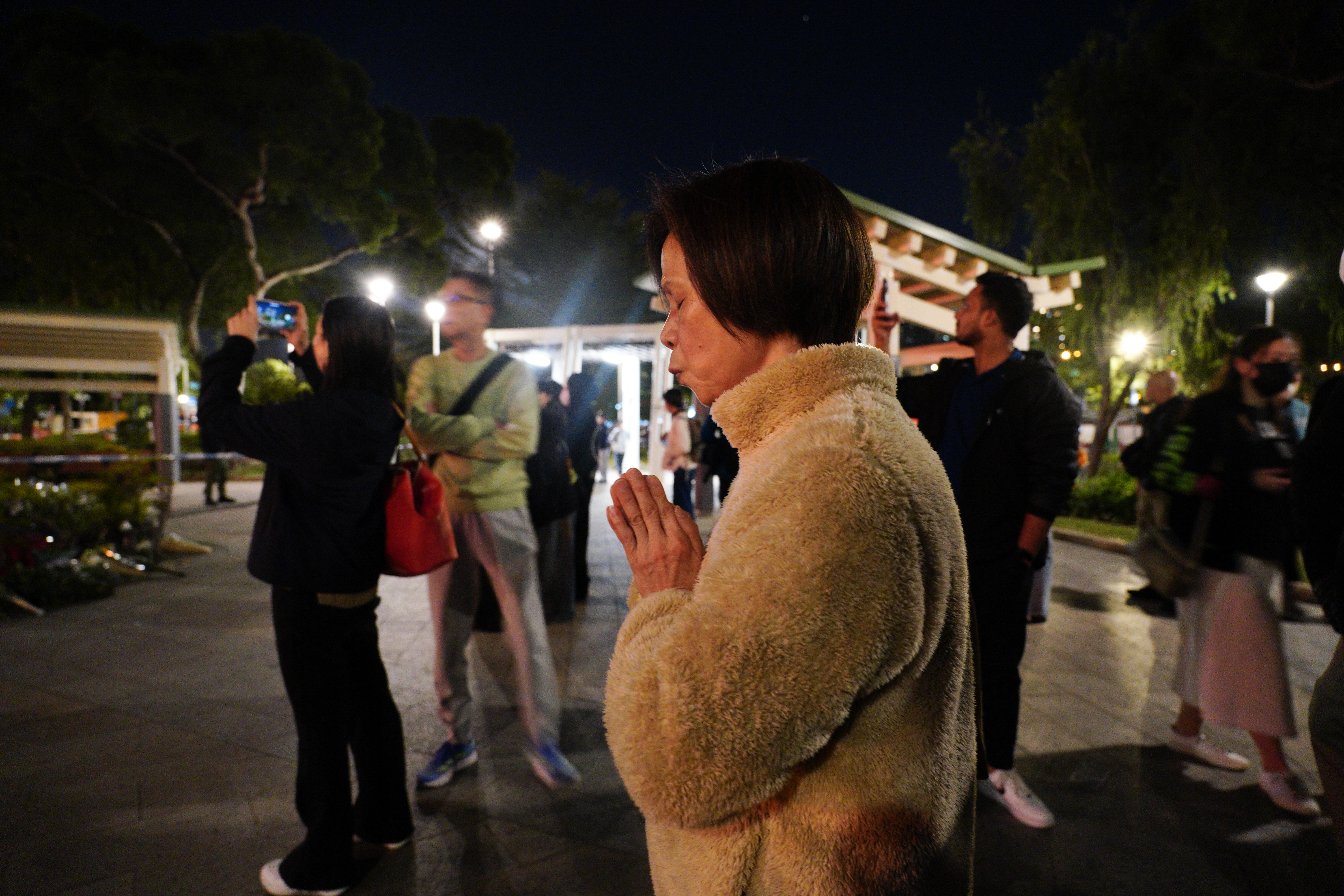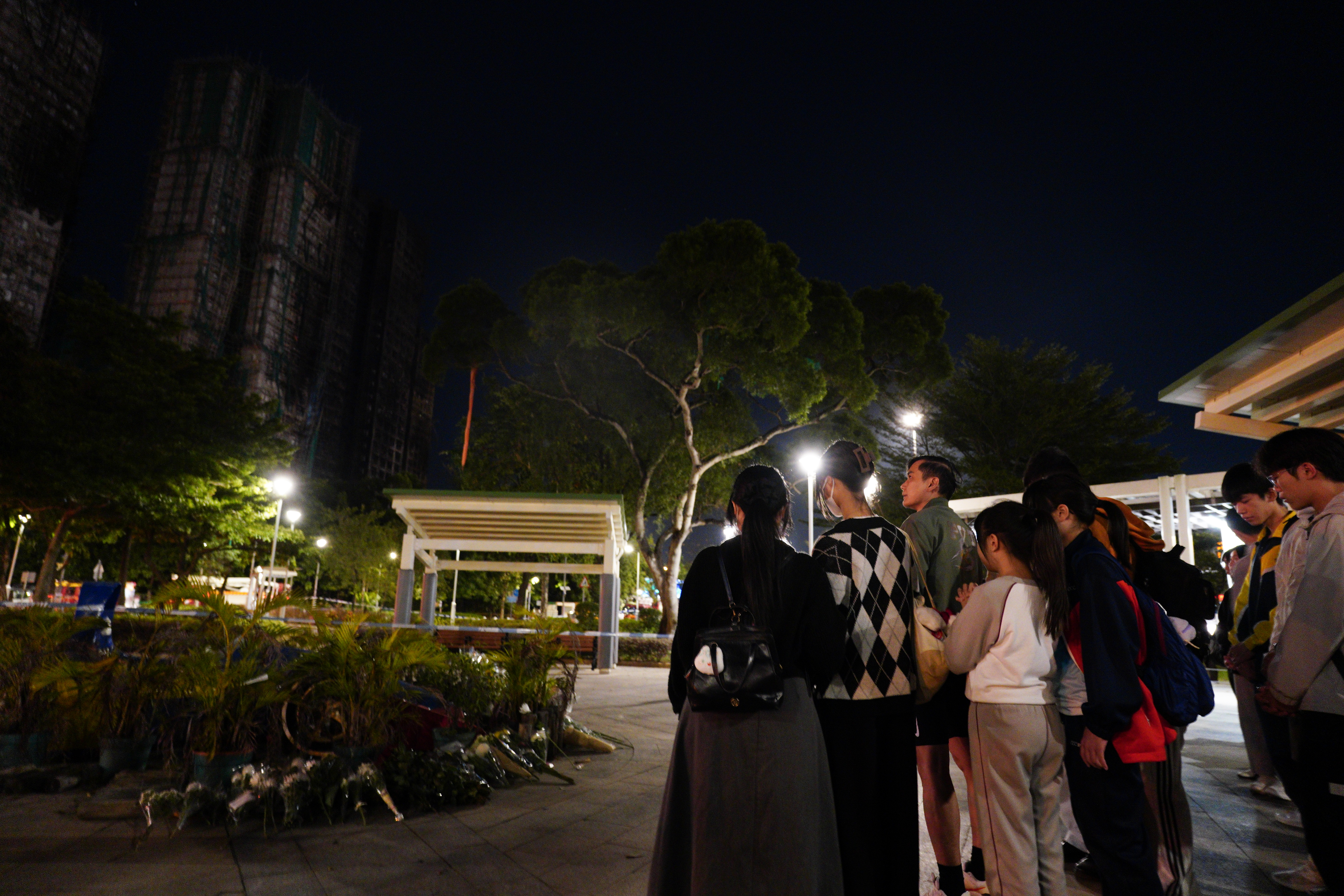 大公文匯全媒體報道,大埔宏福苑前日(26日)發生五級大火,造成嚴重傷亡,全城為之哀慟。大公文匯全媒體記者今晚(28日)在火災現場附近所見,有市民自發前往悼念,有人在場祈禱,亦有人獻上鮮花,寄託哀思。