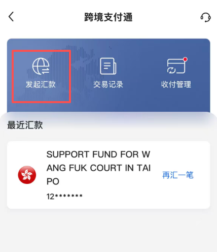 中國銀行手機銀行APP—搜索—「跨境支付通」—發起匯款