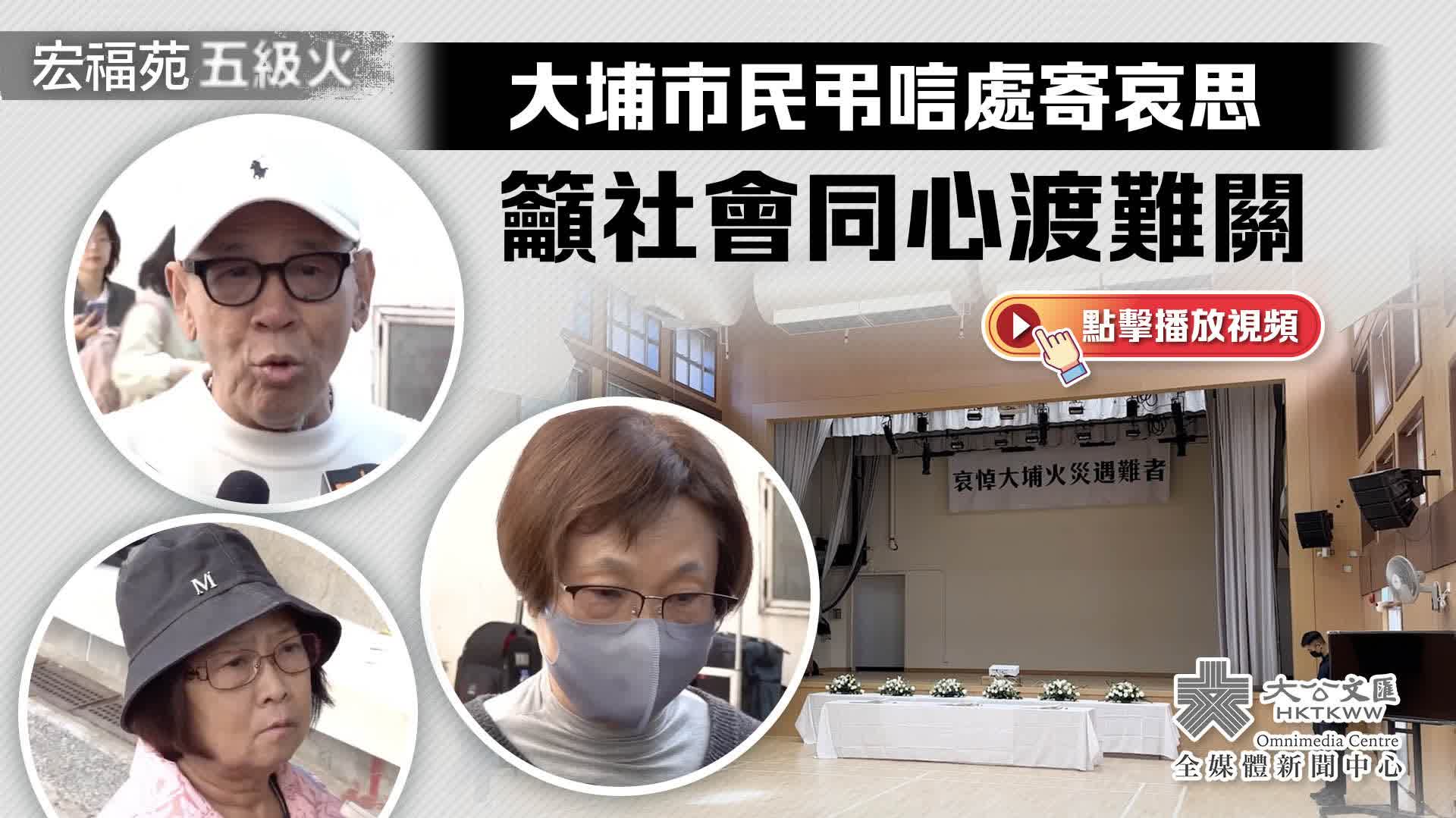 在大埔區居住30多年的王女士想於弔唁處留下心意,以此緩解內心的悲痛,她在接受採訪期間一度哽咽,表示希望有心人士能伸出援手捐款給受災者,同時,受影響的居民可以順利渡過難關。
