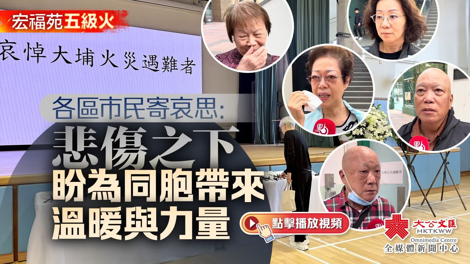 大埔區弔唁處位於富亨鄰里社區中心多用途禮堂,一早便有市民陸續到場默哀,對於這場重大災難,大家哽咽表示十分痛心,希望逝者安息,生者堅強。位於西營盤社區綜合大樓的弔唁處亦有市民前來弔唁,一位女士獻花、簽名後坐在會堂靜默良久,以自己的方式寄託最深的哀思。