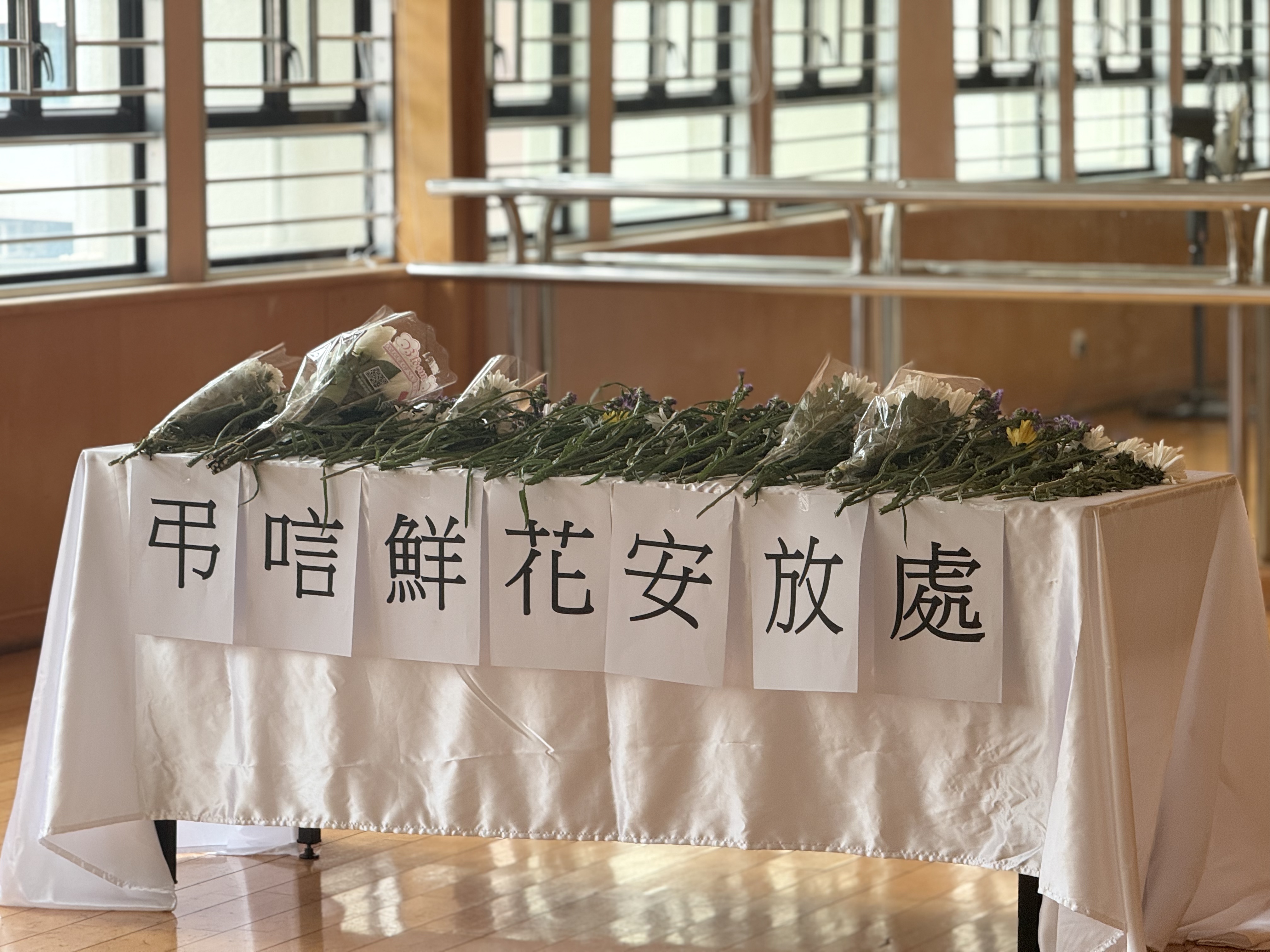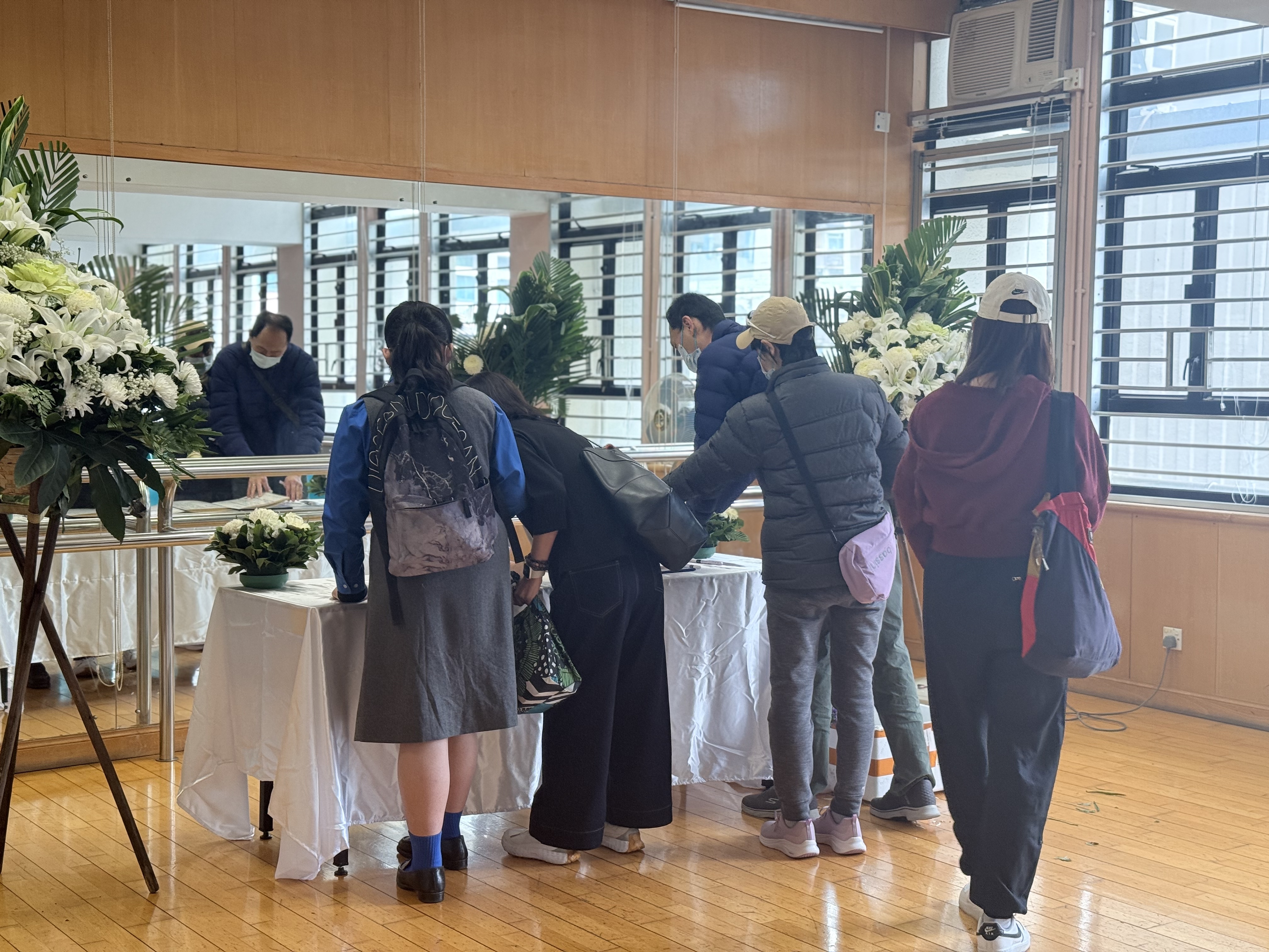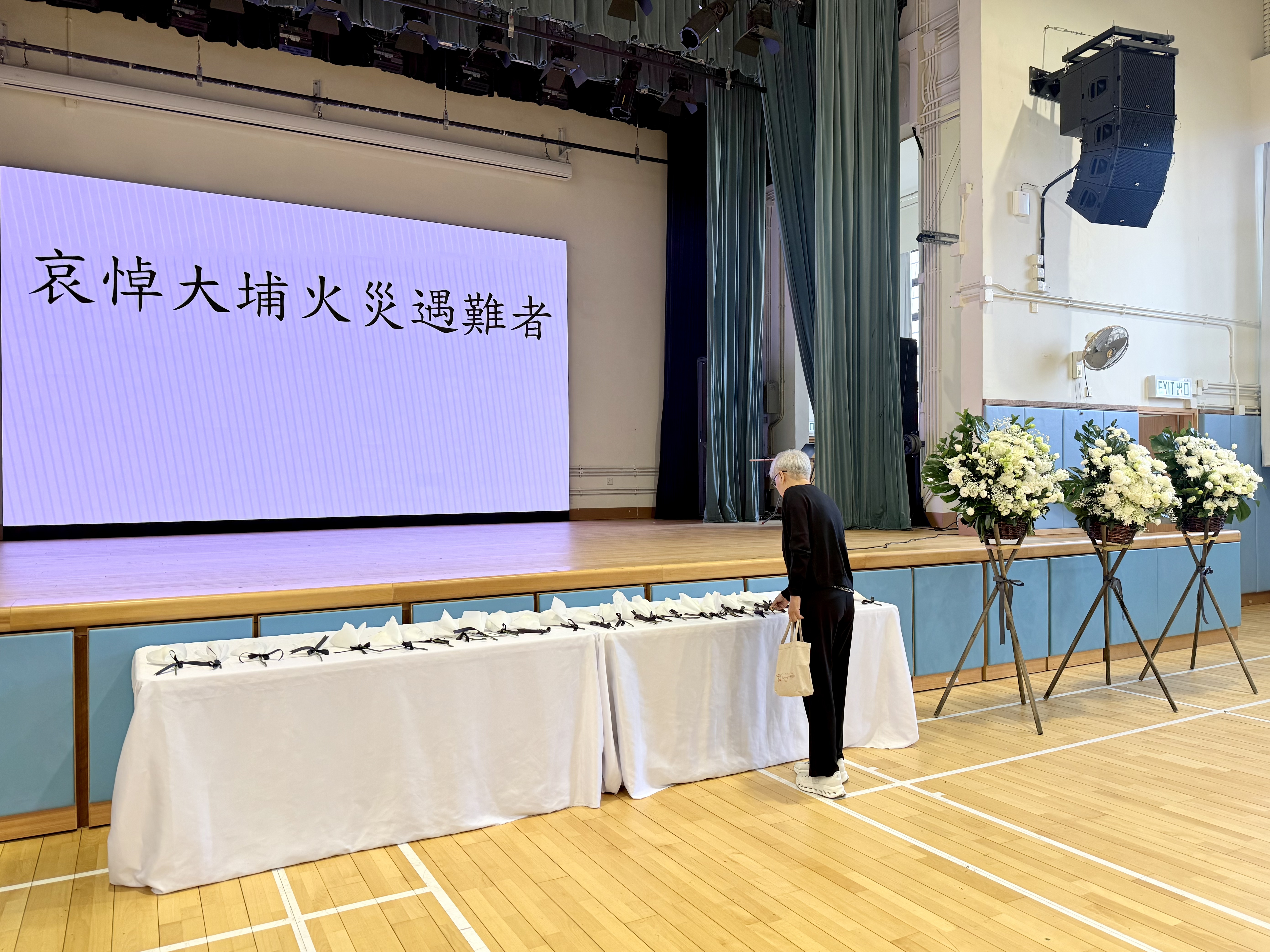 各弔唁處於今日上午開放,現場氛圍肅穆,走進後映入眼簾的是「哀悼大埔火災遇難者」的白底黑字,桌上靜靜躺着弔唁冊和多束白色鮮花。弔唁處人來人往但安靜異常,每位到訪者均小心獻花、輕聲說話和默默哭泣,向罹難者致以最大的尊重和悼念。大家離開時均神色凝重,有人邊走邊拭淚,有人在記者上前詢問後泣不成聲。而讓人動容的是,人們表現和表達的不只是哀傷,還有一種悲痛中強大的、堅韌的對同胞的愛、溫暖與力量。