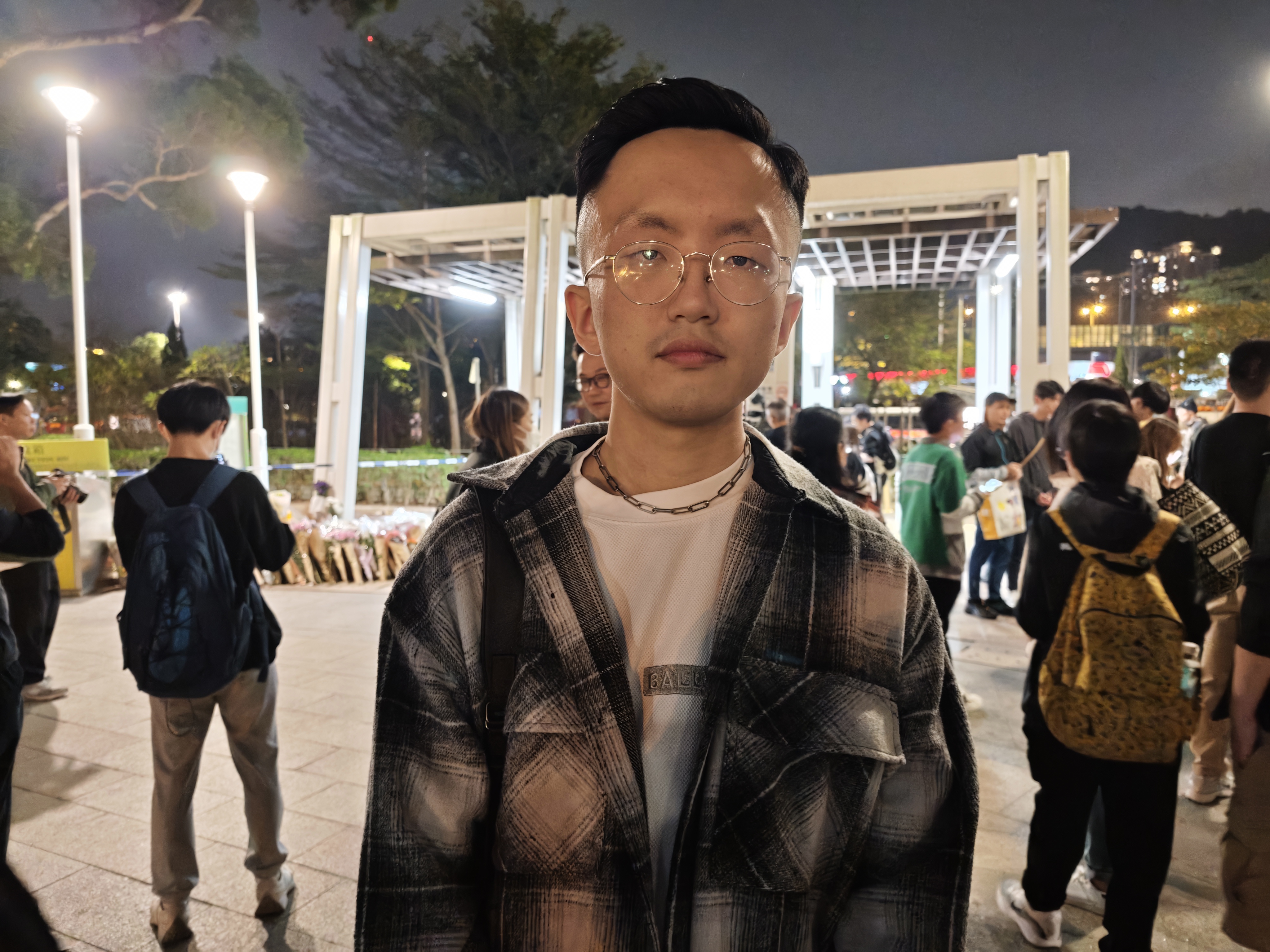 市民James告訴記者,他排隊近半小時才成功完成獻花。他回憶,自己本想前往庇護中心義務服務,來到現場後卻發現了獻花隊伍,於是便加入其中。排隊時,他一直心情沉重,希望透過鮮花和祈禱,紀念本次的遇難者。看到這麼多港人不約而同地聚集獻花,他備受感動,「我哋香港人其實係好有愛、好團結嘅,希望呢份力量可以支持到一班消防員、遇難者家屬。」