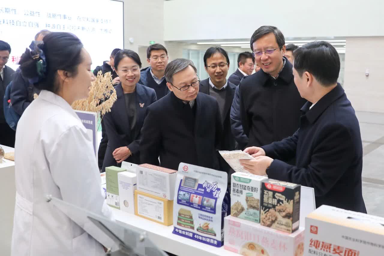 簽約儀式和座談交流前,陳傑、韓傑才一行在中國農科院進行調研,詳細了解中國農科院的發展歷史、發展成就和國家農作物種質資源庫建設歷程、農作物種質資源普查收集與保護利用情況,實地察看種質資源實物展示。