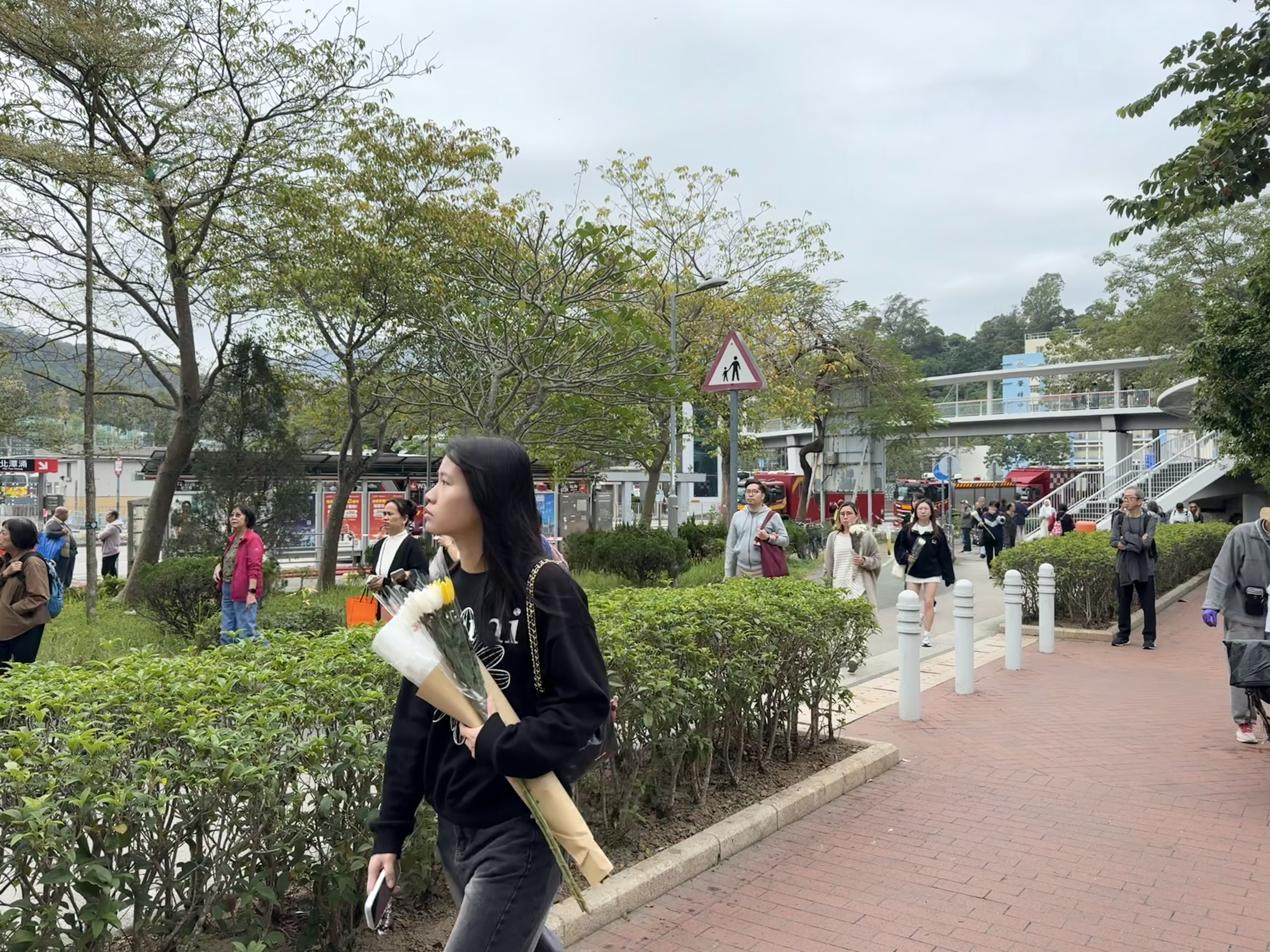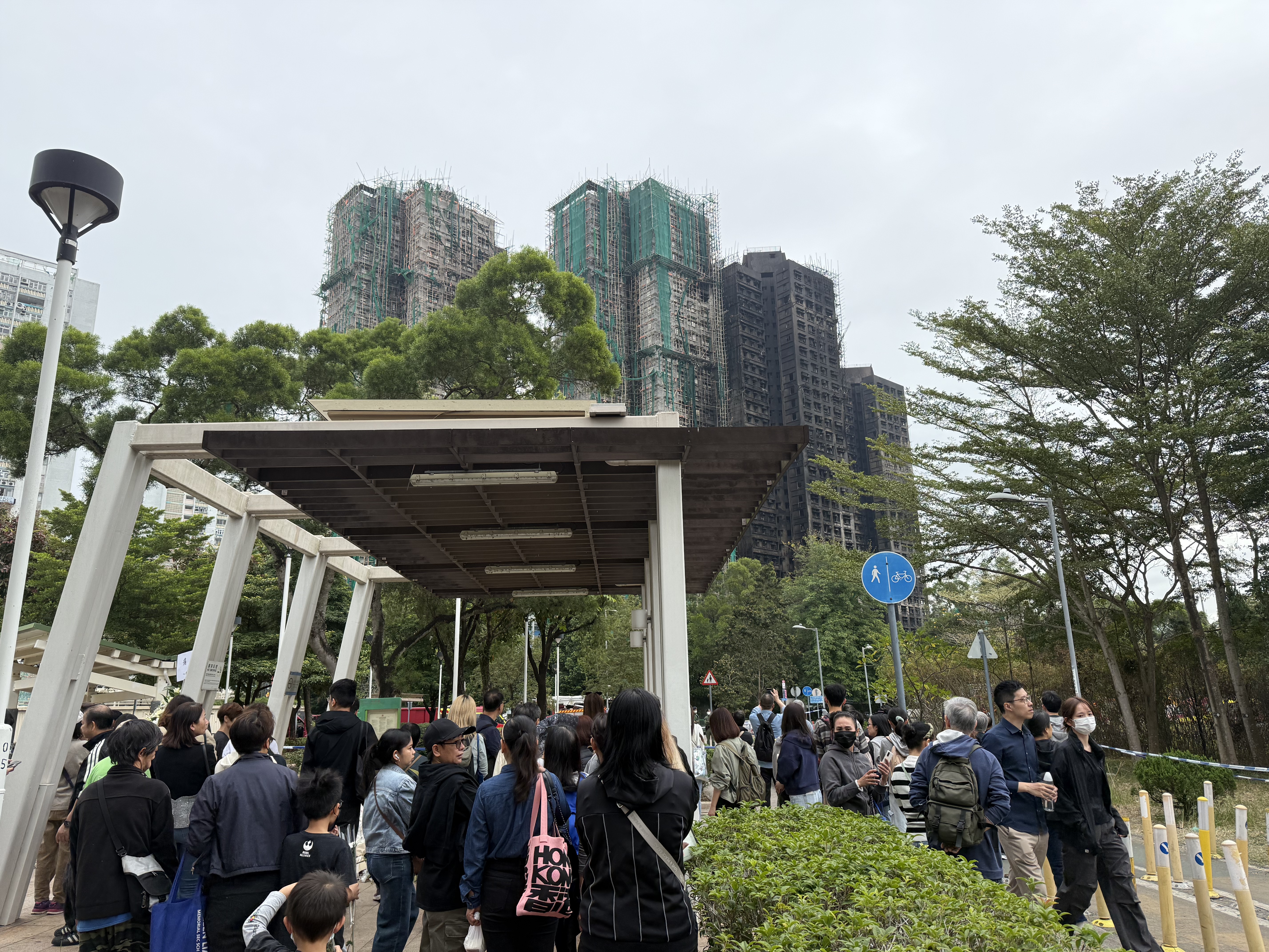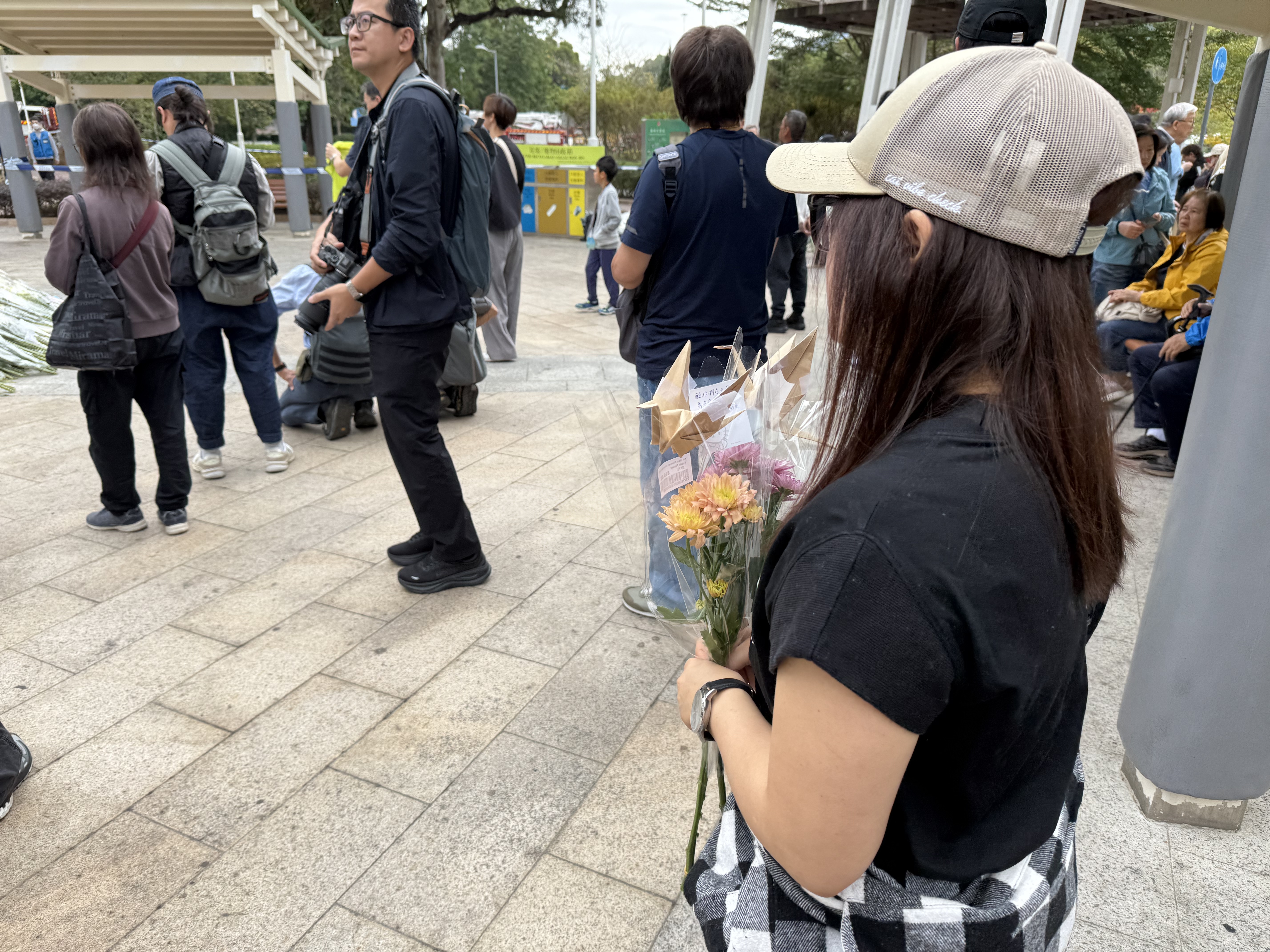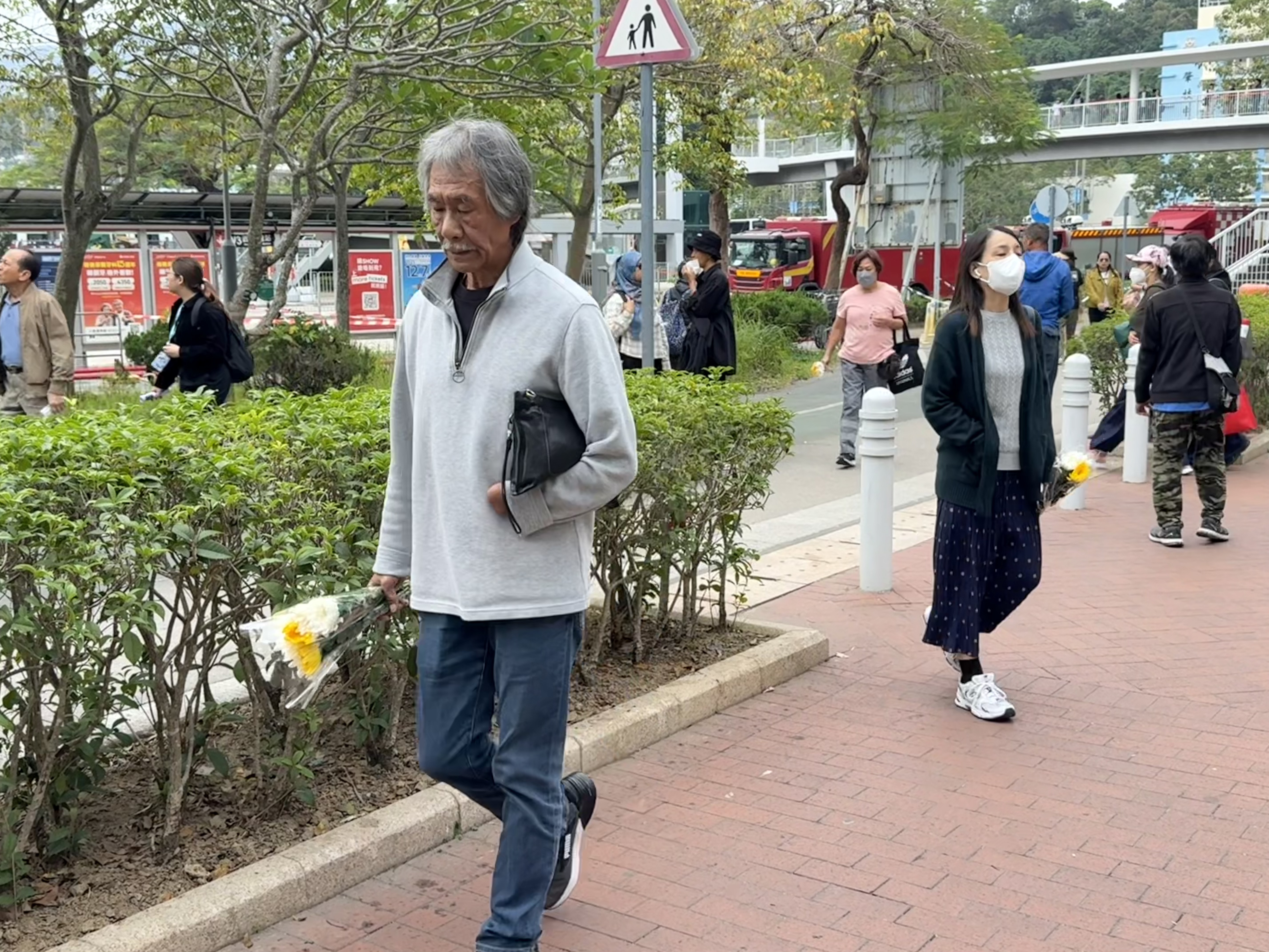 大公文匯全媒體報道,大埔宏福苑11月26日下午發生五級大火,造成嚴重死傷。特區政府昨日(29日)在政府總部舉行悼念儀式,沉痛哀悼在大埔宏福苑火災不幸罹難的人士,全港所有政府建築物及設施的國旗及區旗下半旗誌哀,同時不少市民紛紛前往廣福休憩處獻花悼念罹難者。今日(30日)仍有不少市民攜帶鮮花前往宏福苑附近悼念,早上9時30分,點新聞記者看到已有大批市民齊聚宏福苑附近獻花悼念罹難者,還有市民邊走邊落淚。