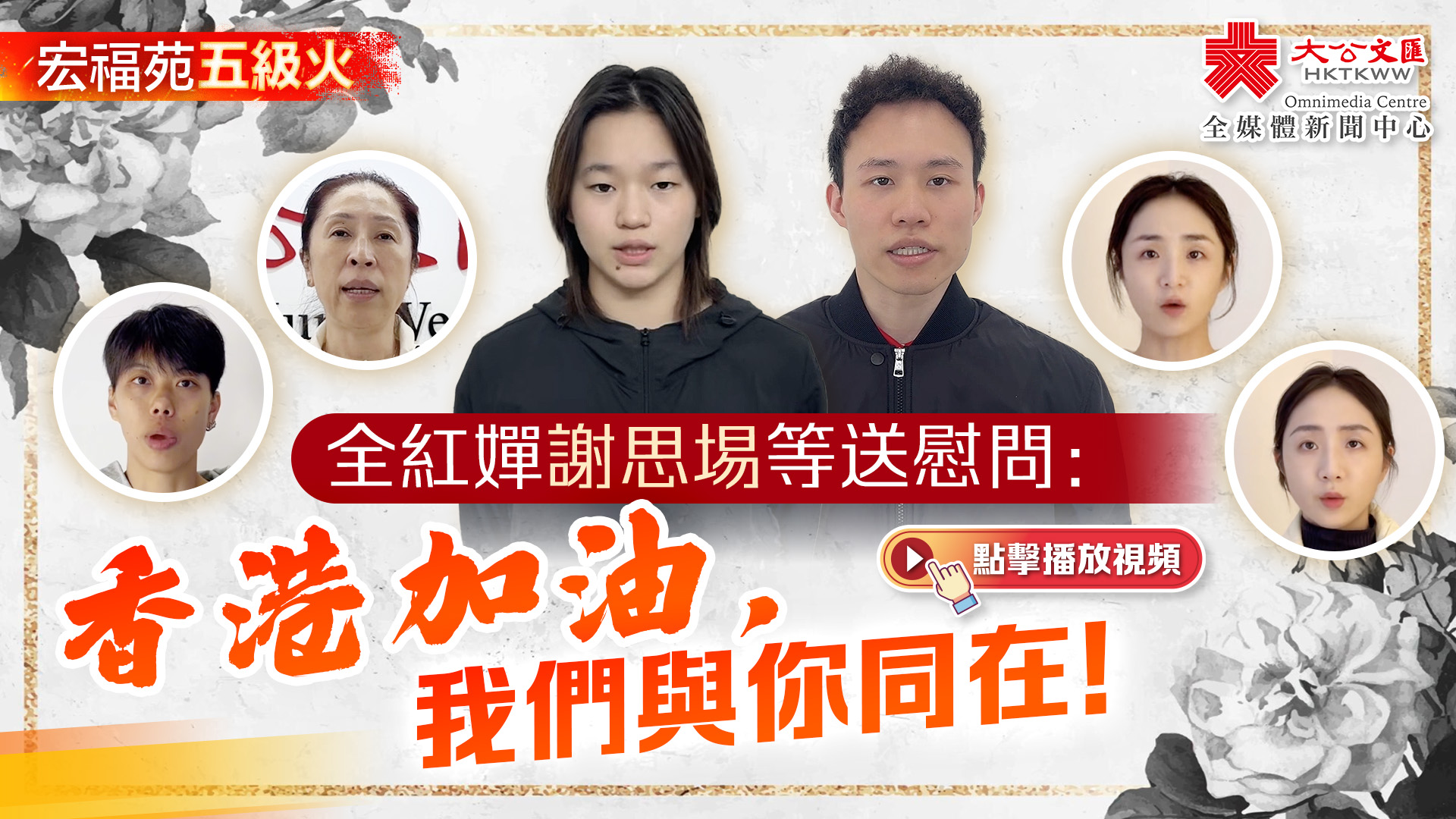 (大公文匯網 記者敖敏輝、實習生黃靖容 廣州報道)香港大埔宏福苑五級大火,造成重大人員傷亡和財產損失,內地社會各界迅速響應,以多種形式向香港同胞傳遞關切、送上祝福、伸出援手。粵港一脈相親、休戚與共,剛剛在十五運會賽場上與香港運動員同場競技、並肩拚搏的廣東體育健兒,始終密切關注着災情進展與同胞安危。全紅嬋、謝思埸、王柳懿、王芊懿、劉景揚、鄭薇等知名運動員及教練員,第一時間通過香港大公文匯傳媒集團傳遞暖心支持,向受災同胞致以深切慰問,向逆行衝鋒的一線救援人員致以崇高敬意。