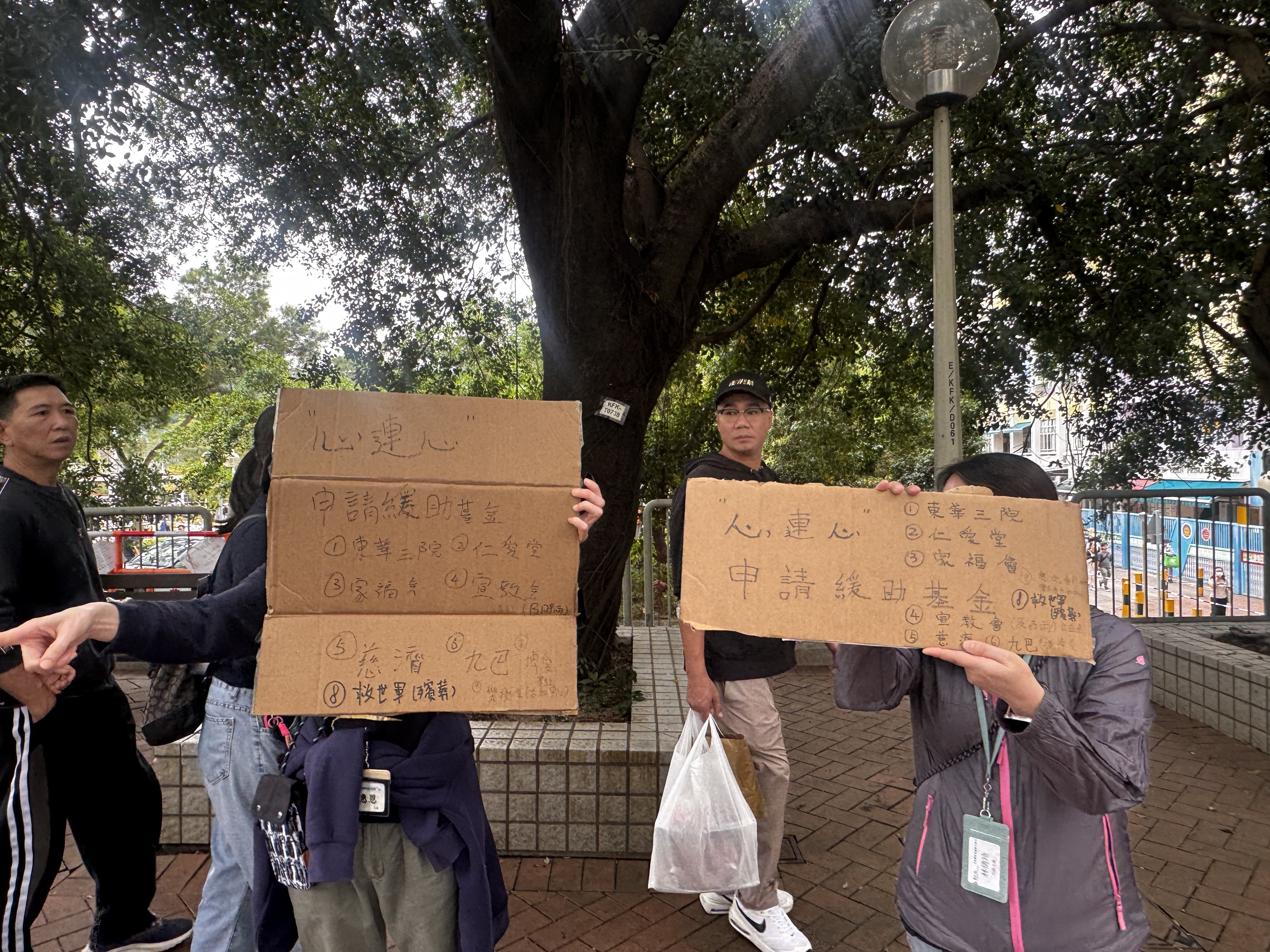 張照臻說明,現時透過「心連心」計劃,已有三個組織在同一地點發放救援金,市民可一次過申請三項基金。然而現場還有其他機構設攤提供援助,部分市民不太清楚流程,尤其是長者,義工服務隊於是聯繫警方及民政處進行協調,組織市民統一排隊,只需排一次隊即可申請所有救援金。