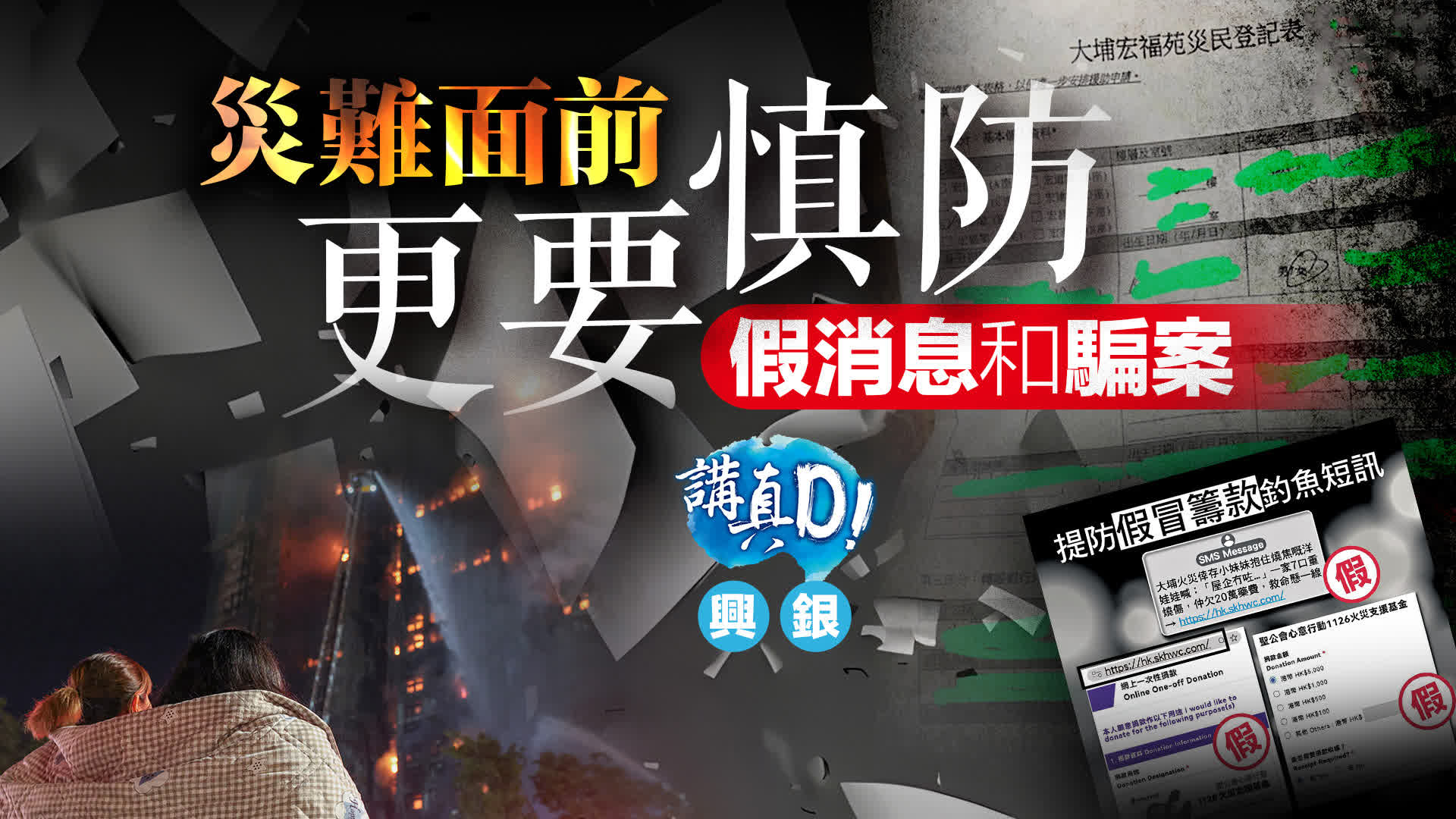 同時,面對大批災民喪失至親、家園盡毀這一慘況,更要警惕騙徒趁此災難時刻混水摸魚謀發災難財。有在事件中痛失家園的宏福苑居民連日來收到多通可疑電話,對方自稱是義工,以協助申請援助金為由,企圖騙取其個人資料;有騙徒更是假扮義工,使用虛假的「大埔宏福苑災民登記表」混水摸魚,騙取個人資料、銀行及信用卡資料,甚至要求填寫驗證碼;亦有騙徒利用慈善機構名義發出籌款的釣魚短訊,妄圖詐騙愛心市民的錢財,行為如同在災民傷口撒鹽,令人髮指。