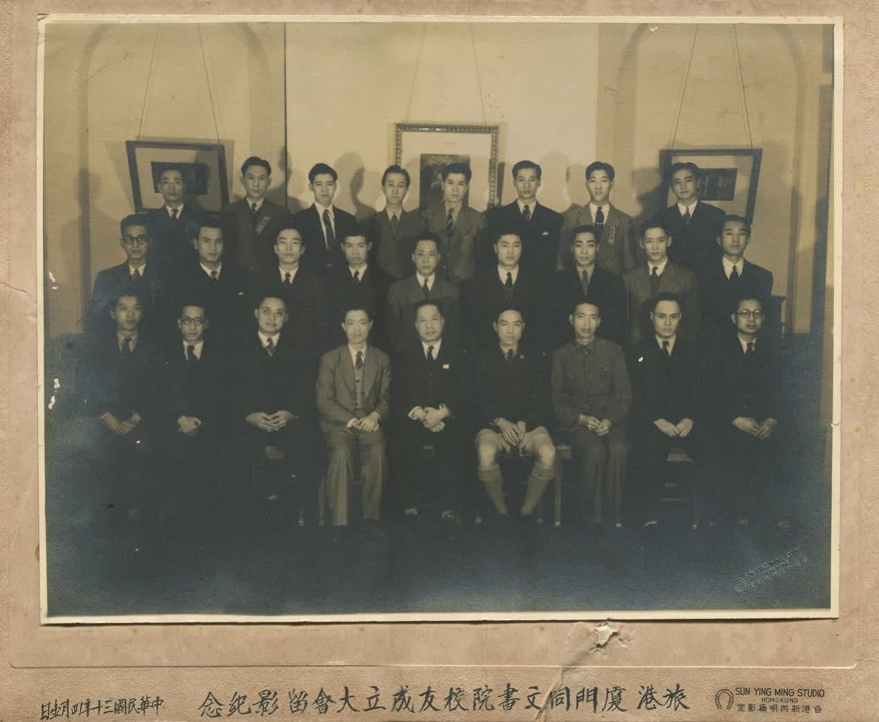 他珍藏着一幅朋友紫日給的老照片,合影下方有 「旅港廈門同文書院校友成立大會留影紀念」的字樣,還有一個日期是「民國三十一年四月壹日」,即拍攝於1942年4月1日。離開當時戰火紛飛的廈門,老照片上正裝端坐的人們在短暫聚會後各奔前程,將各自人生匯入歷史的洪流之中難以追尋。而近60年後的和平年代,來自同一所學校的後輩們同前輩一樣相聚港島,將校友會再次成立起來,彷彿歷史跨越世紀的一記迴響。