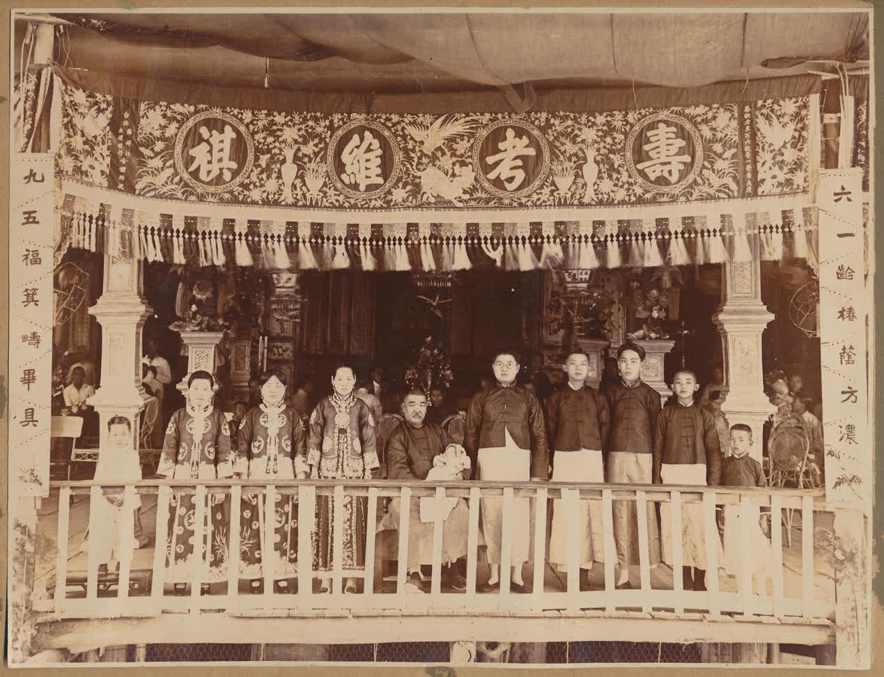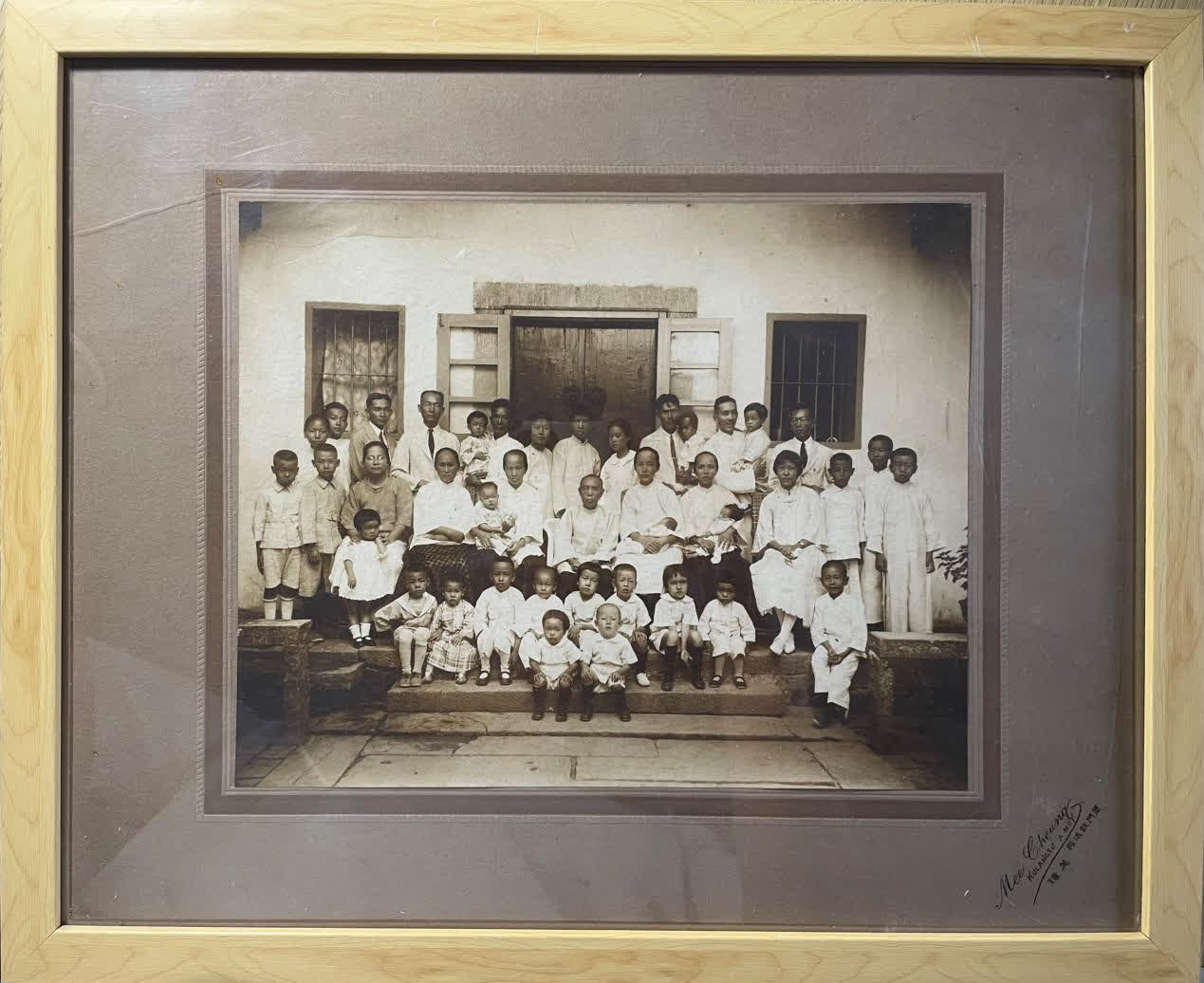 白樺珍藏的另一幅老照片,是清末民初南洋四大糖商之一的郭春秧61歲大壽時在台北拍攝的全家福老照片。