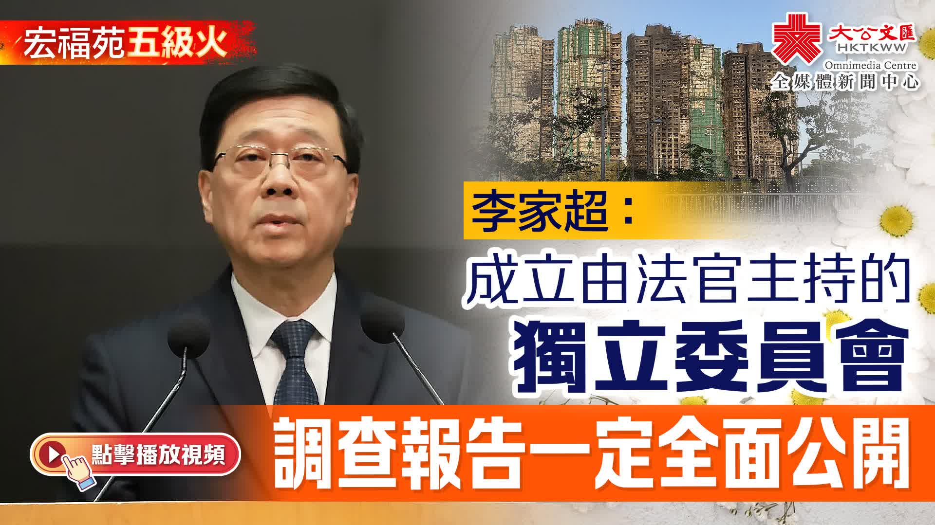 他續指,特區政府將針對火災調查成立由一名法官主持的獨立委員會,將聯絡司法機構,協助委員會工作,提出建議和報告,助力政府深化改革。