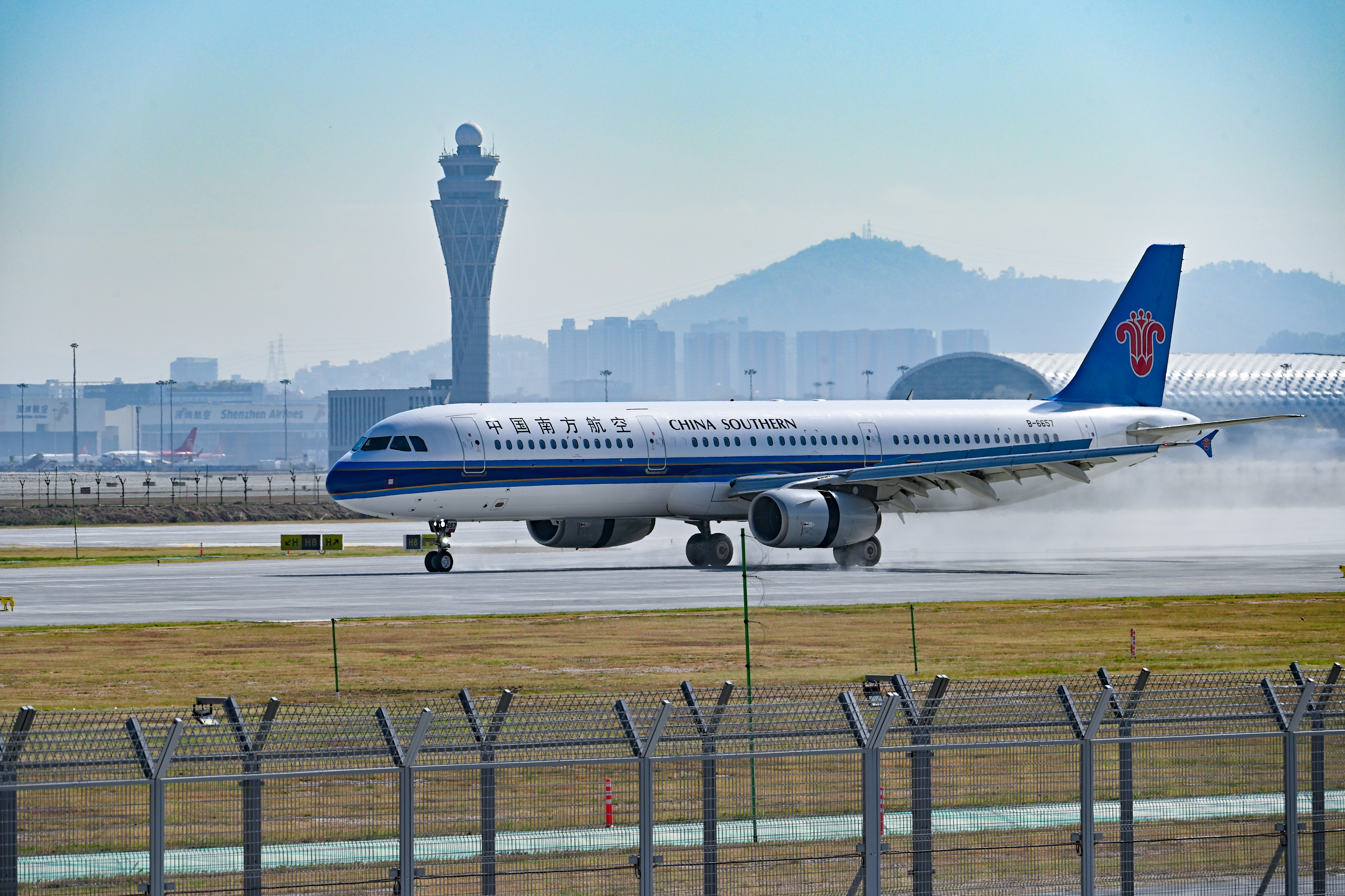11月29日上午10時08分,深圳航空ZH9103航班從三跑道順利起飛,10時13分,南方航空CZ3590航班在三跑道平穩降落,成為深圳機場三跑道投運後首個起飛和首個降落的航班。