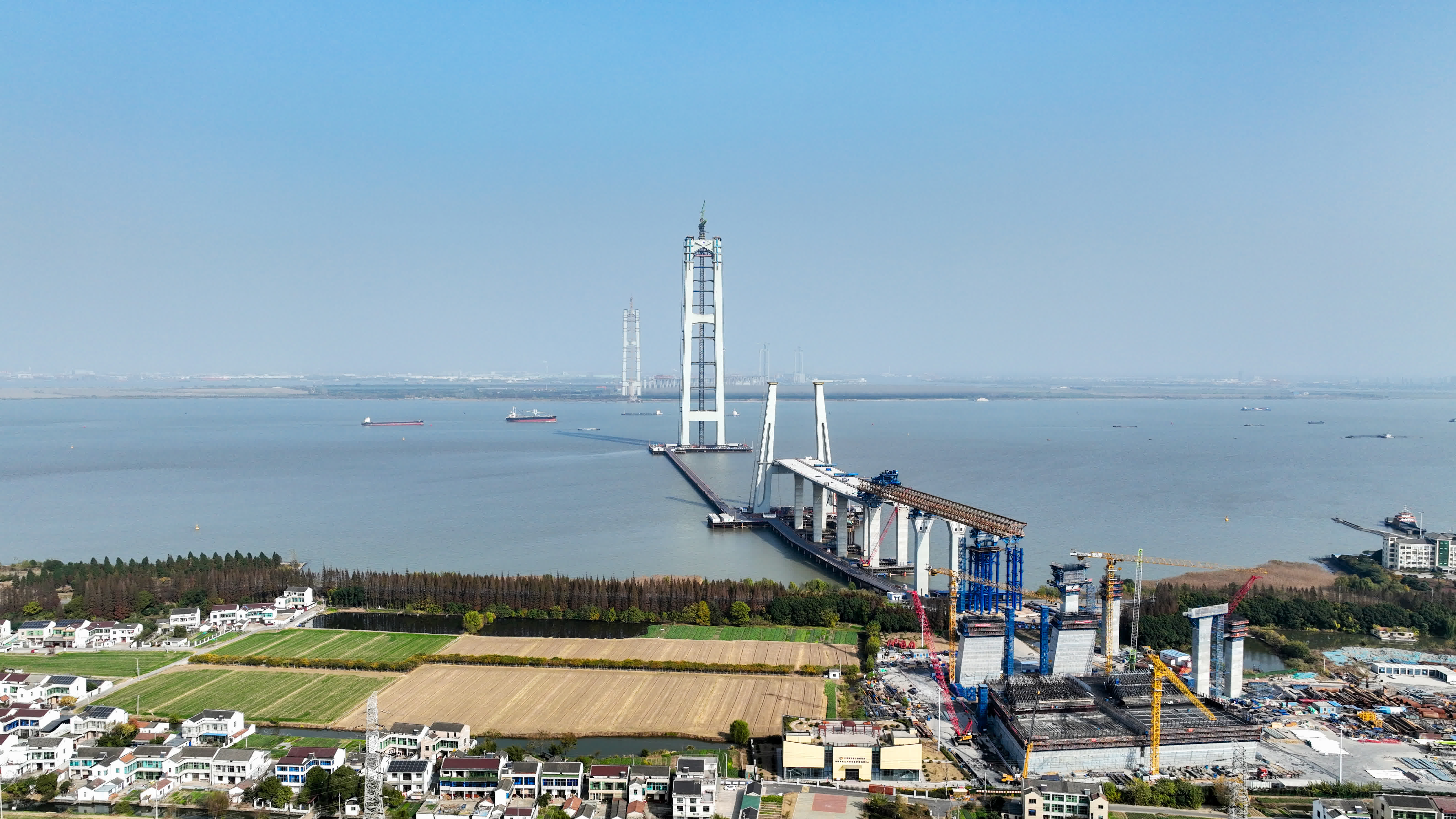 目前,全橋關鍵工點正齊頭並進,南、北航道橋的主塔與錨碇施工協同展開,為後續纜索系統安裝奠定了堅實基礎。大橋預計2028年建成,建成後將大幅縮短蘇州張家港、泰州靖江、南通如皋三地的通行時間,極大地促進長三角區域一體化發展,優化長江幹線過江通道布局。