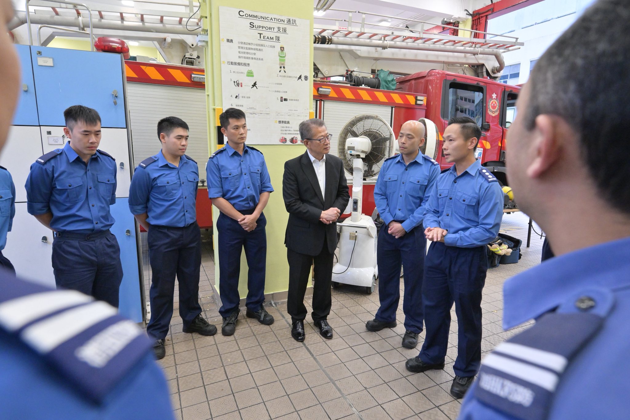 無情的大災中,消防員、警隊、醫護以至整個政府團隊都團結一心,救急扶危、挽救生命,特別是在危險的火場裏,奮不顧身、全力搶救受困市民的消防員。陳茂波今天亦到訪小瀝源消防局,向參與當日救災工作的消防員表達由衷的感激和謝意。他強調,特區政府必定全力照顧好英勇殉職消防員何偉豪的家屬,為他們提供支持。