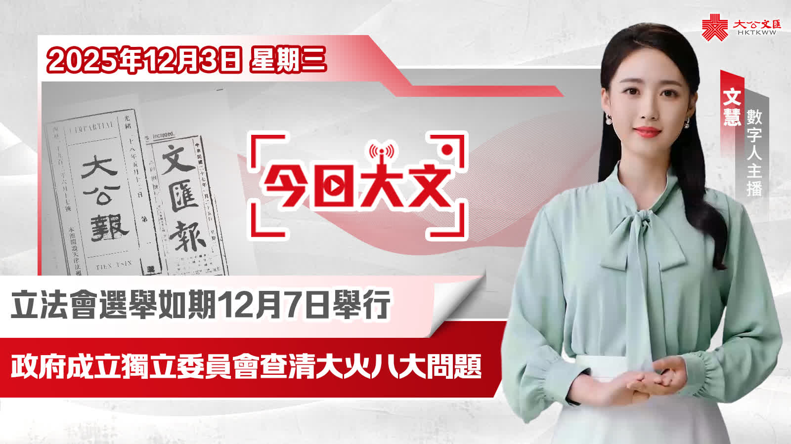 大公文匯網報道,今天是2025年12月3日(星期三),大公文匯網與您速覽報紙看點。
