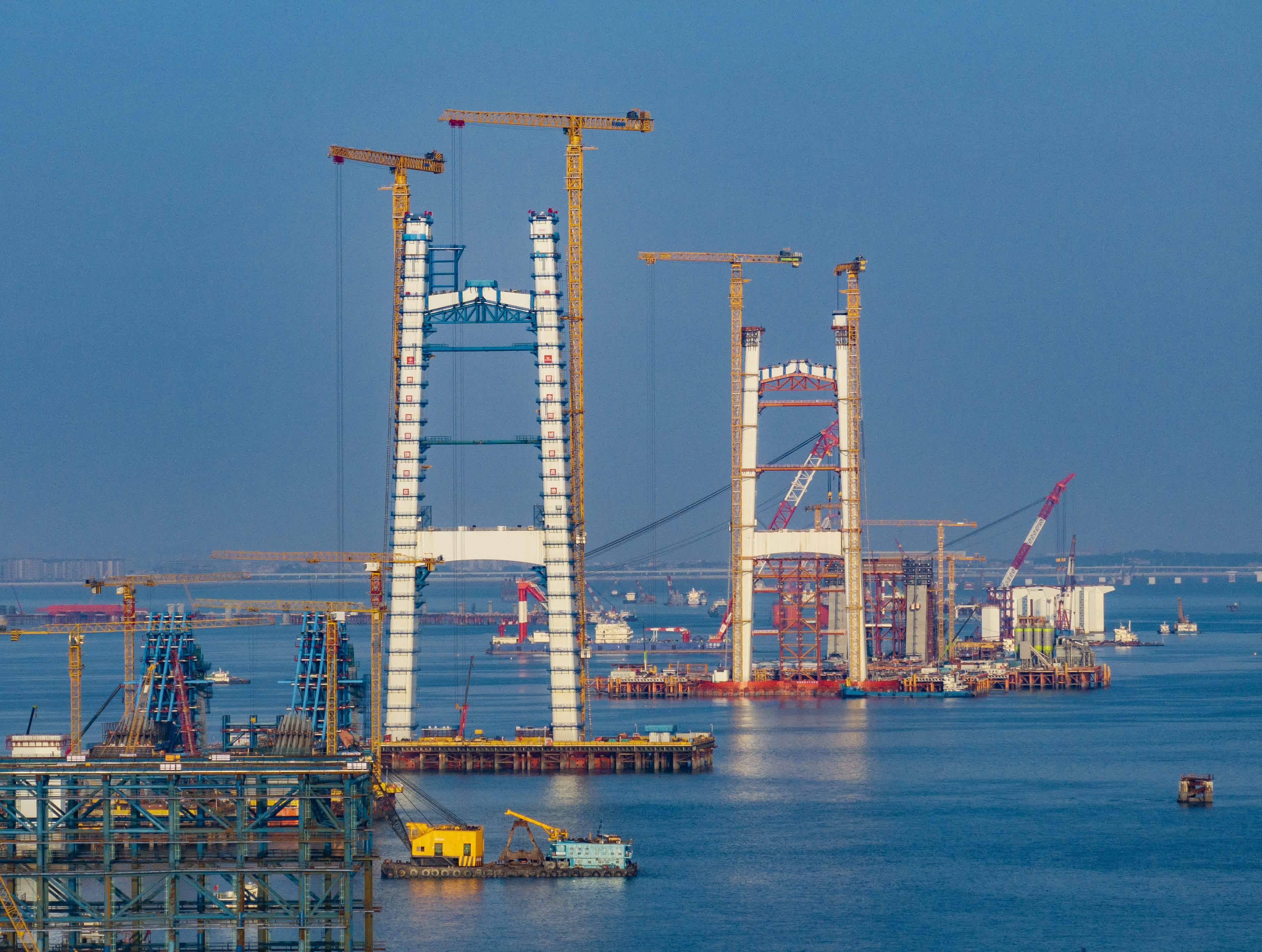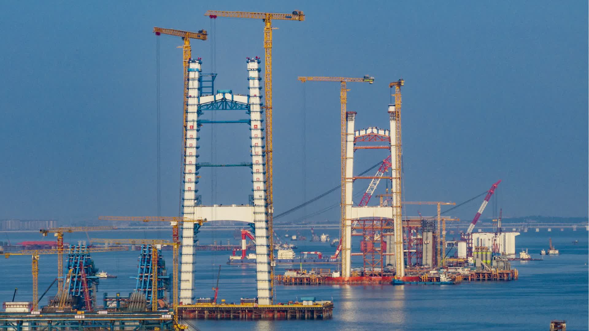 據人民網報道,該主塔為預製裝配化大型海中橋塔,創新採用無筋鋼殼混凝土組合結構橋塔設計方案。