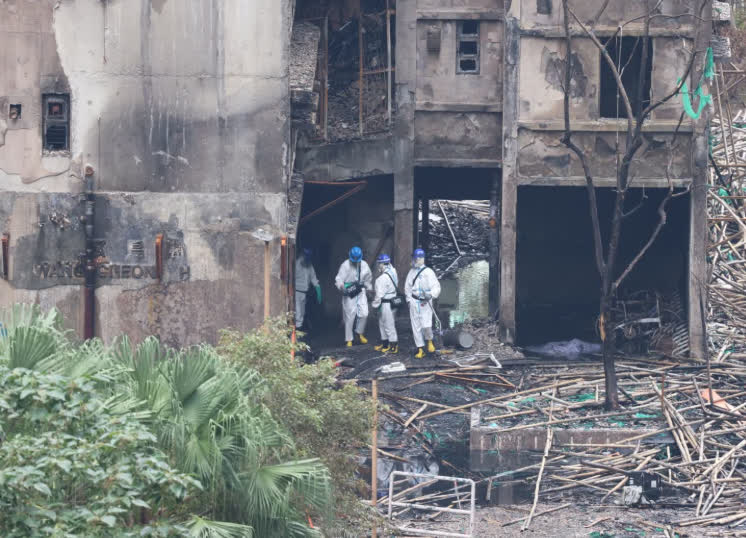 (大公文匯全媒體記者蕭景源報道)大埔宏福苑11月26日發生五級火警,至今已造成至少156人死亡,30多人失聯。今日(3日)早上,警方災難遇害者辨認組(DVIU)人員繼續進入宏昌閣及宏新閣展開搜索工作;至下午2時許,災難遇害者辨認組人員從災場抬出懷疑遺體。