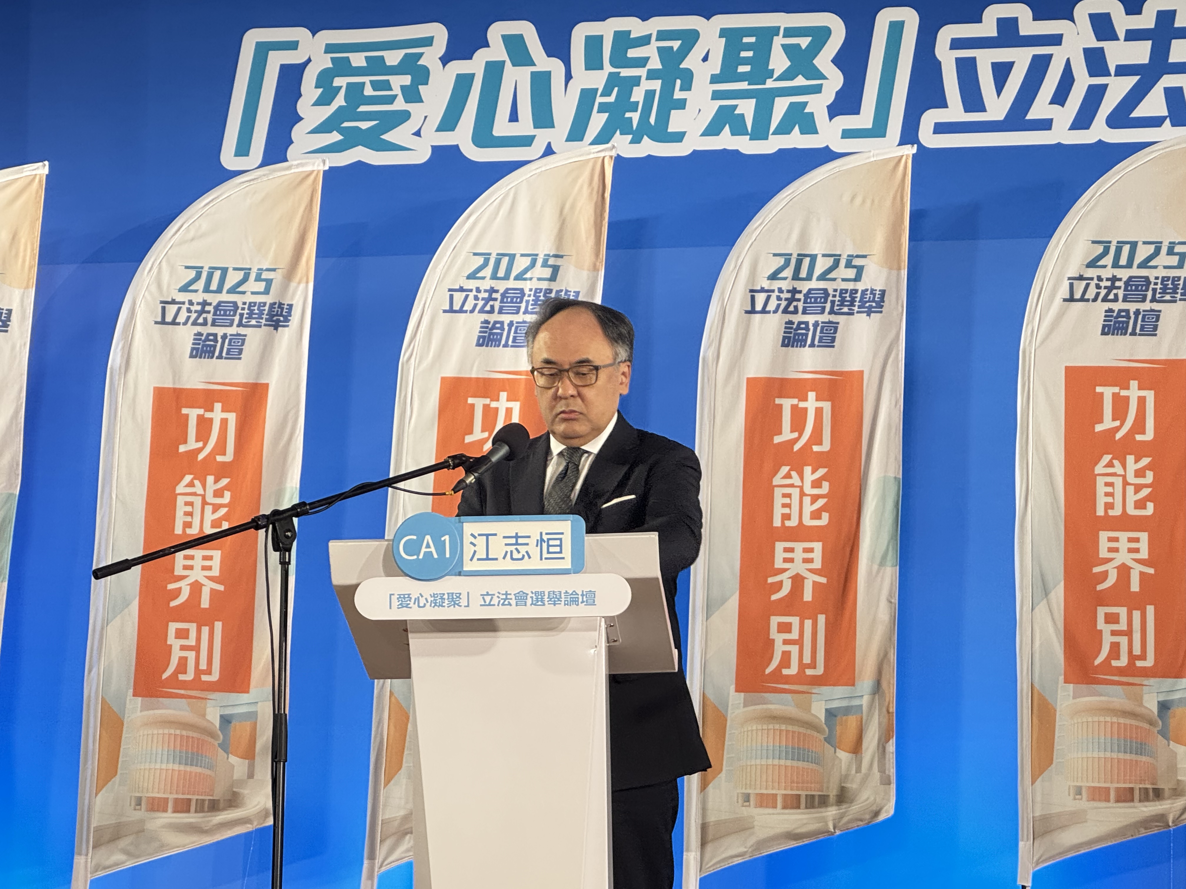 CA1號候選人江志恒在發表政綱前,首先向大埔火災的死難者家屬致以哀悼。他坦言,自己曾反覆思考為何仍要參選,而近日災難中見到市民互助、食肆主動提供愛心飯盒的善舉,給予他莫大鼓舞,更堅定了他服務業界、守護香港飲食文化的決心。