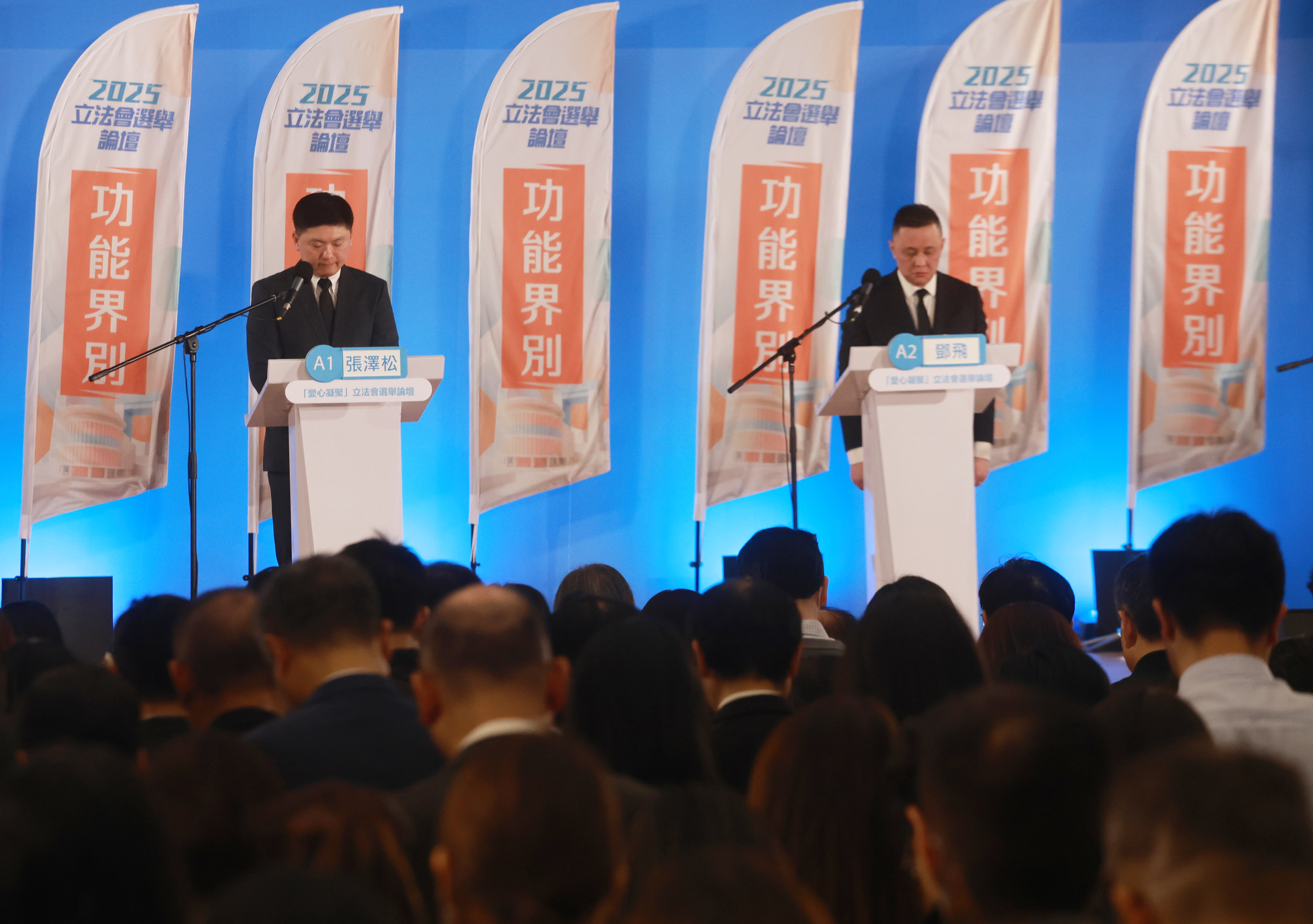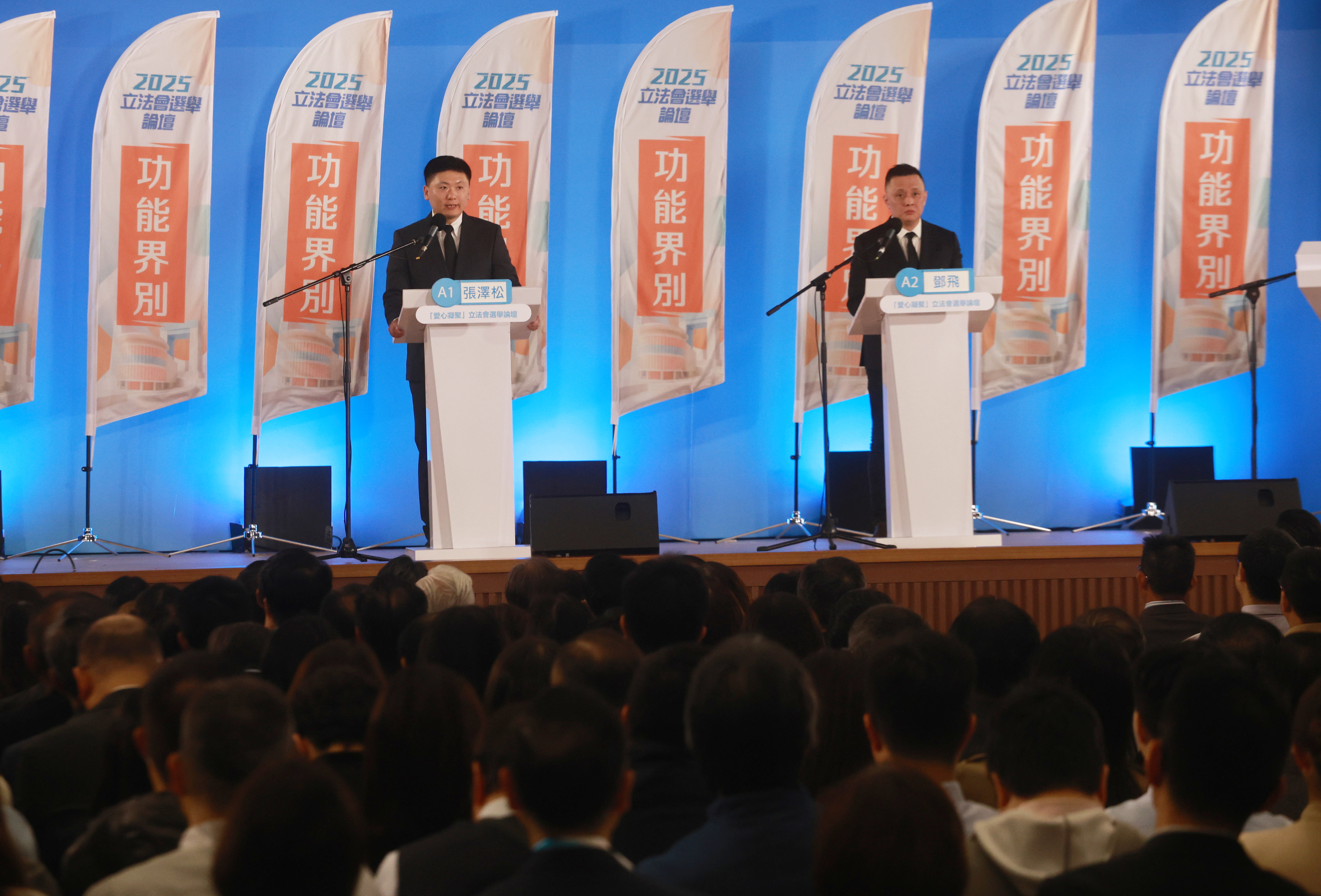 (大公文匯全媒體 記者 莫楠)新一屆立法會選舉投票日定於12月7日舉行。今日(12月3日)晚上舉行的2025年立法會「愛心凝聚」功能界別教育界選舉論壇,近400名選民及相關人士出席。為表達對大埔火災逝者的深切哀悼,論壇開始前全場進行一分鐘默哀,並取消口號及打氣環節,以表莊重肅穆。A1號候選人張澤松與A2號候選人鄧飛於會上闡述政綱,就師生精神健康、數字教育等議題深入交流,並圍繞鞏固教育樞紐、推動應用科學大學發展等方向展開討論,共同為香港國際教育樞紐的可持續發展建言獻策。