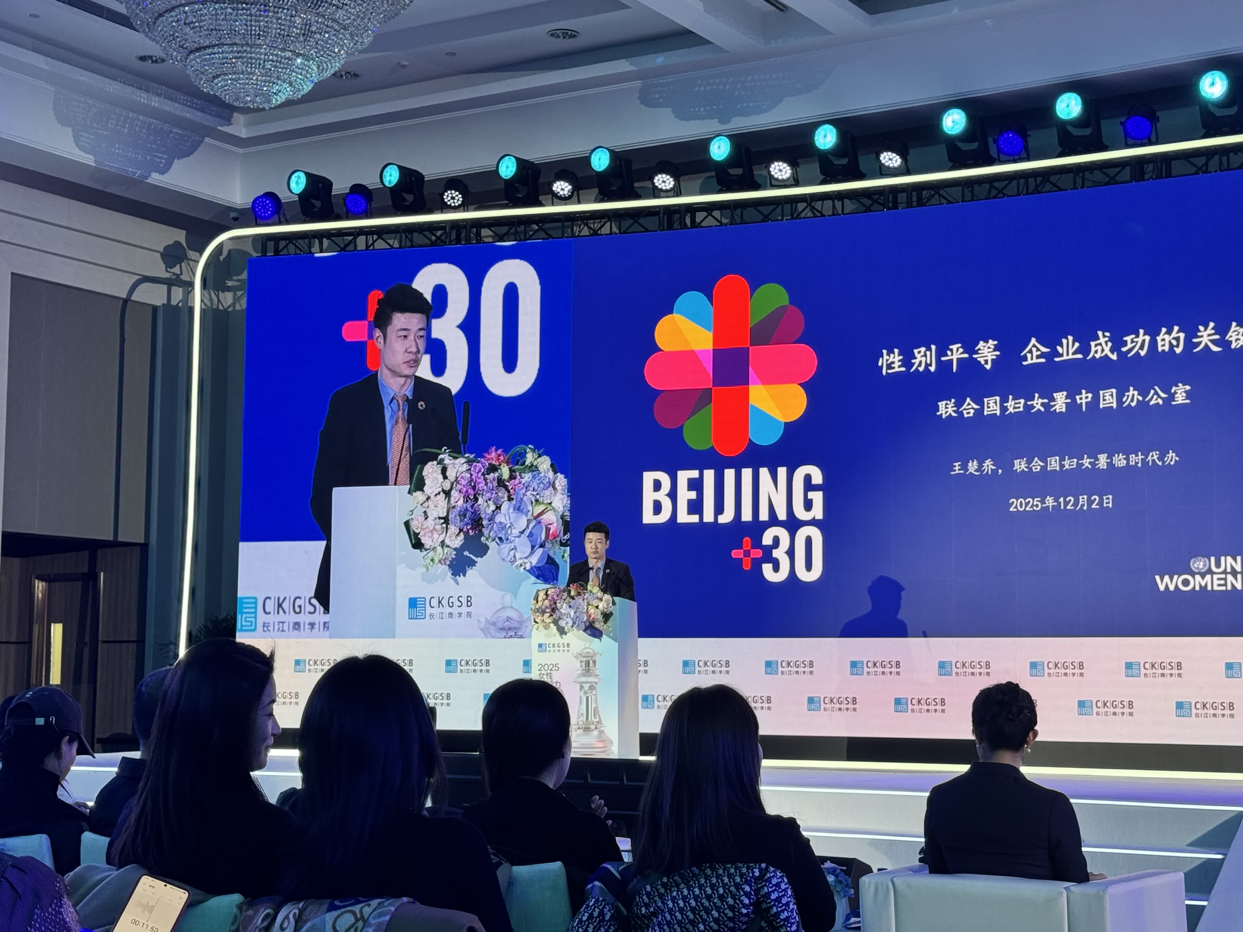 聯合國婦女署中國辦公室臨時代辦王楚喬在演講中表示,性別平等不僅是一項社會責任,更是一種商業智慧。「我認為增加女性在高層管理中的比例,能帶來更高的股價增長和更好的風險管理。」他提到,女性在企業發展、商業創新和全球可持續發展中具有不可替代的作用。「75%的家庭消費由女性決定,65歲以上女性人數是男性的1.2倍,這意味着女性群體在提振消費、銀髮經濟等趨勢中具有戰略價值。」