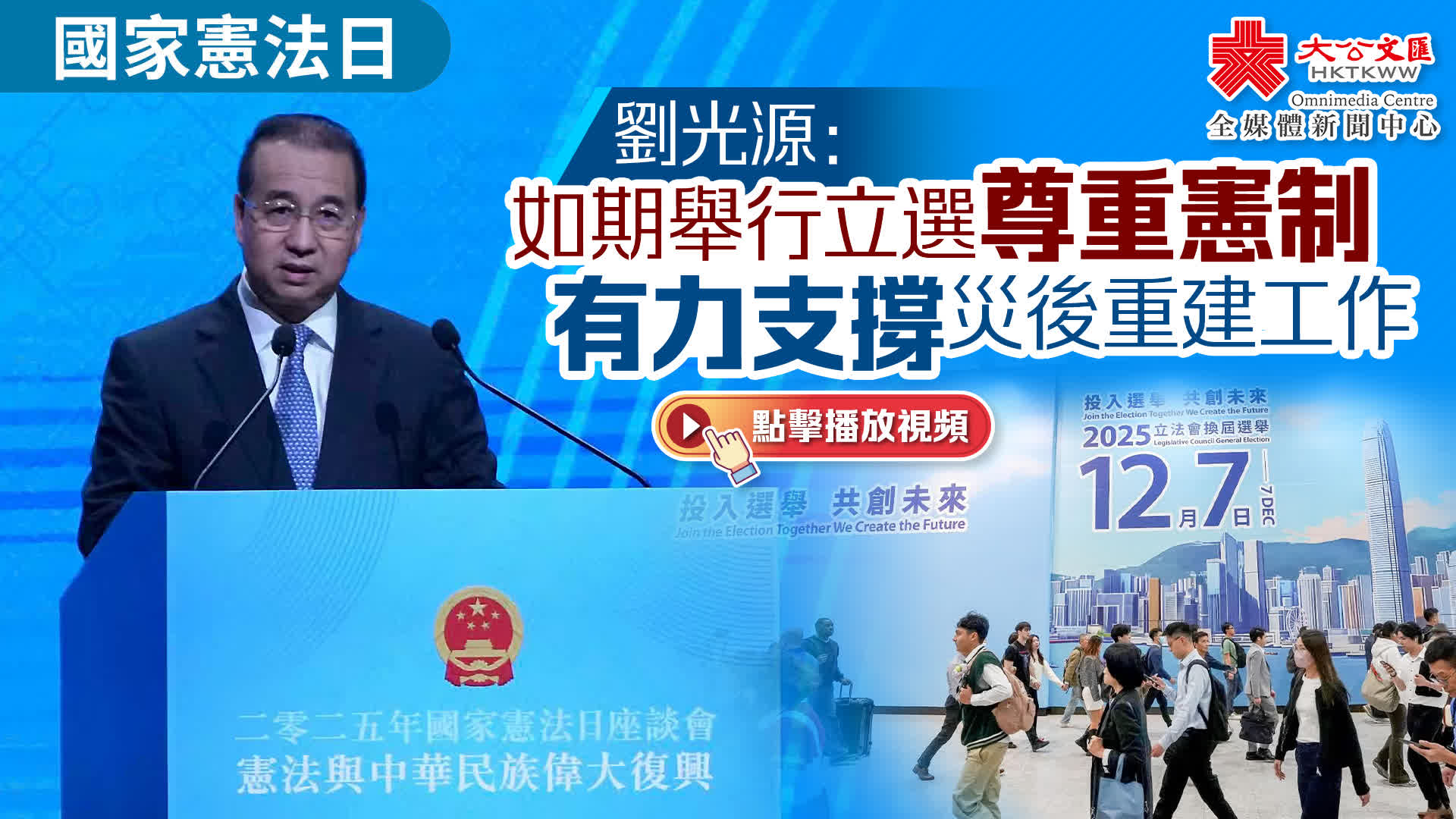 劉光源又說,李家超前日已宣布,原定12月7日舉行的立法會選舉如期舉行,強調這是對憲制秩序和法治精神的遵守和尊重,是對維護社會穩定和災後重建工作的有力支撐,也是對香港未來最負責任的態度。相信在各方共同努力下,香港一定能夠把救災和選舉兩件大事都辦好,一定能在悲痛之中凝聚起眾志成城、勇毅前行的力量!