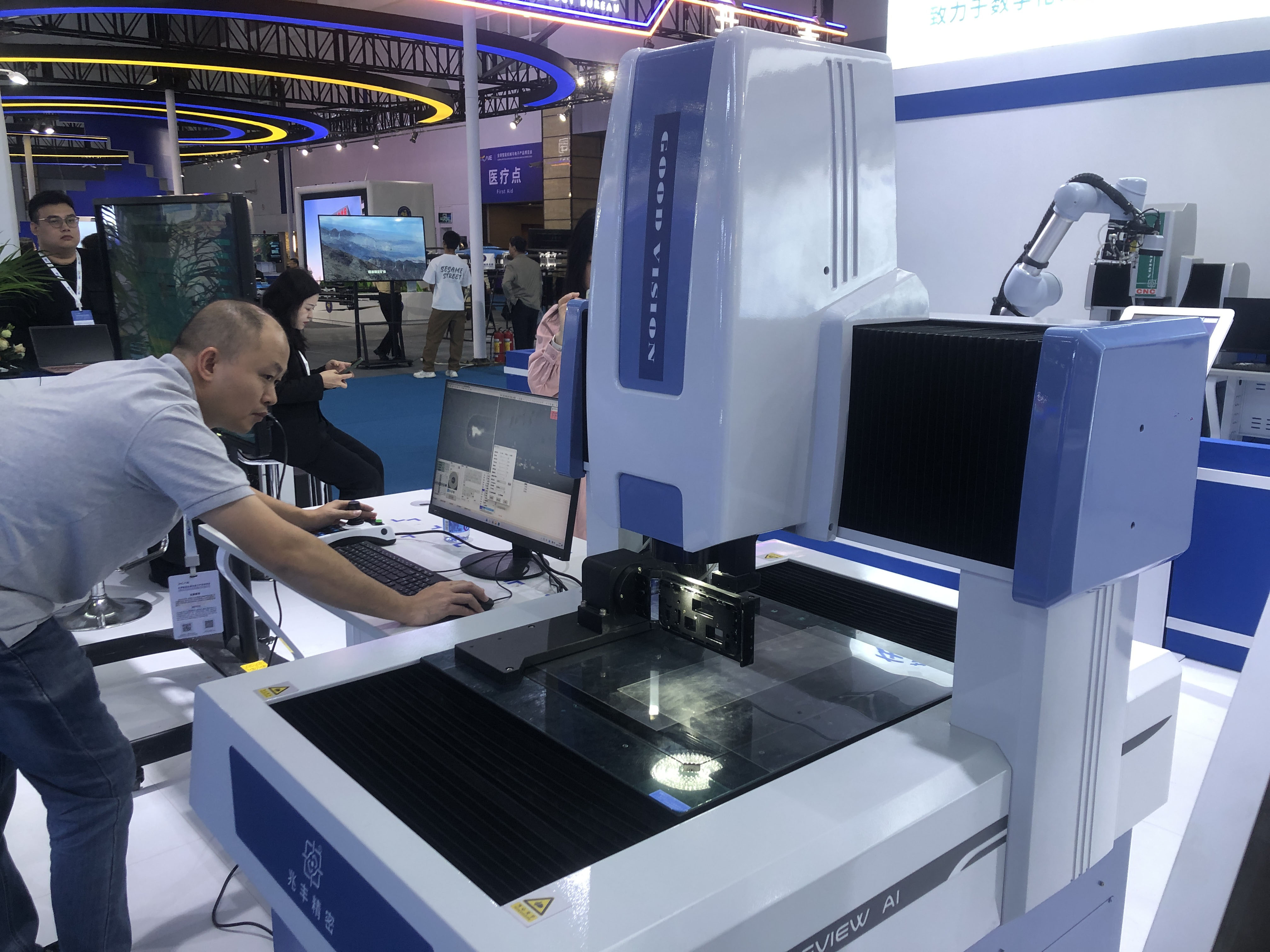 「世界工廠」東莞則在展會現場舉行人工智能產業對接會,展現從傳統製造業基地向智能產業高地轉型的最新成果。其中,東莞兆豐精密緻力於數字化、智能化光學測量技術的研發與創新,此次攜AI柔性無人化檢測方案、AI智能影像儀、工業CT無損檢測等設備亮相,通過AI智能檢測系統,實現產品全尺寸全自動檢測。