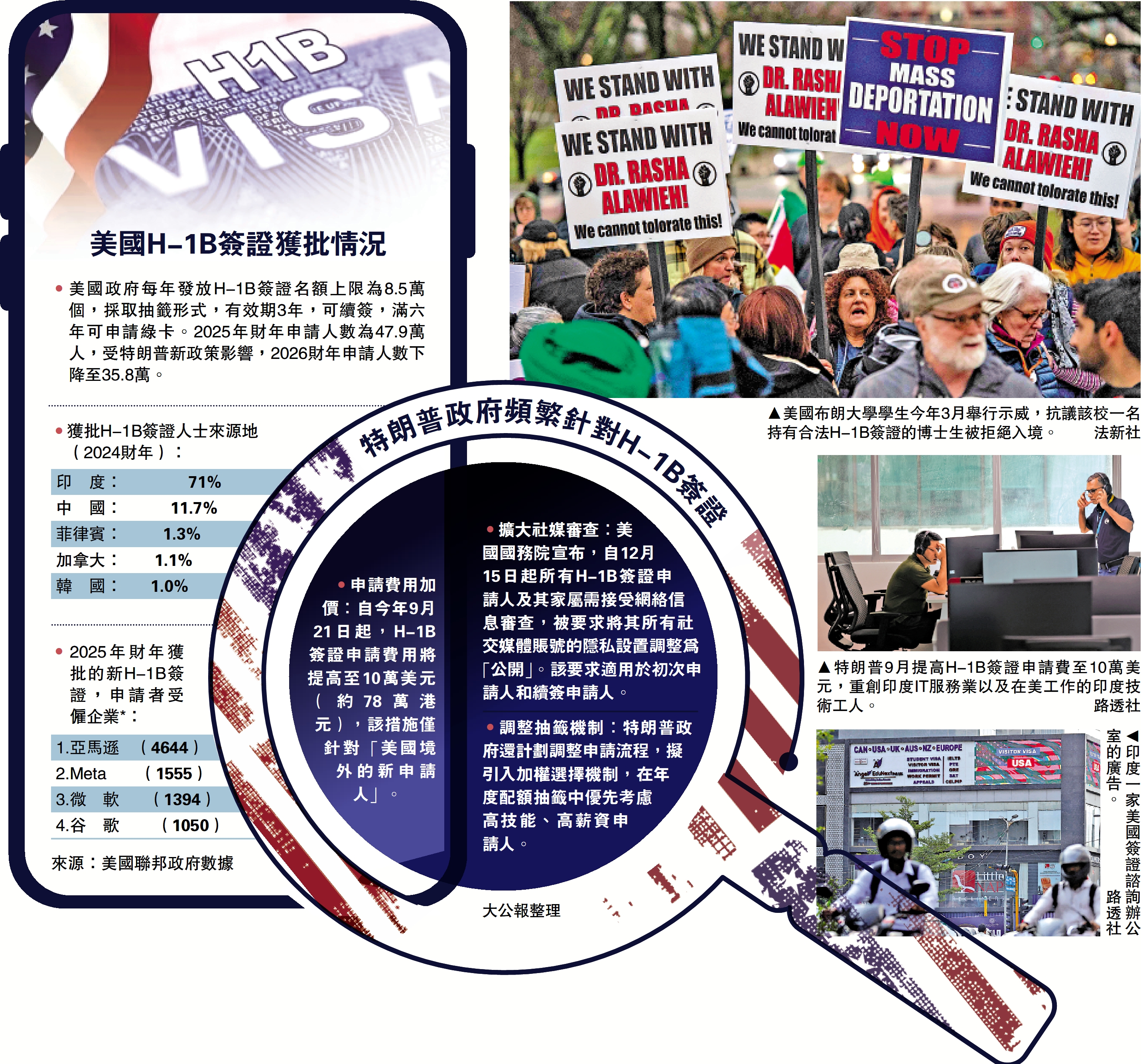 大公報綜合報道,美國特朗普政府再收緊簽證政策,對H-1B申請人實施更嚴格的背景審查。美國國務院3日宣布,自12月15日起,所有H-1B簽證申請人及其家屬要接受網絡信息審查,必須公開其所有社交媒體賬號。若申請人曾在美國境內從事言論審查的工作,也會成為拒簽的理由。有分析指出,美國打着保護「言論自由」的旗號,卻不斷擴大對外國申請人的社交媒體審查,盡顯雙標。