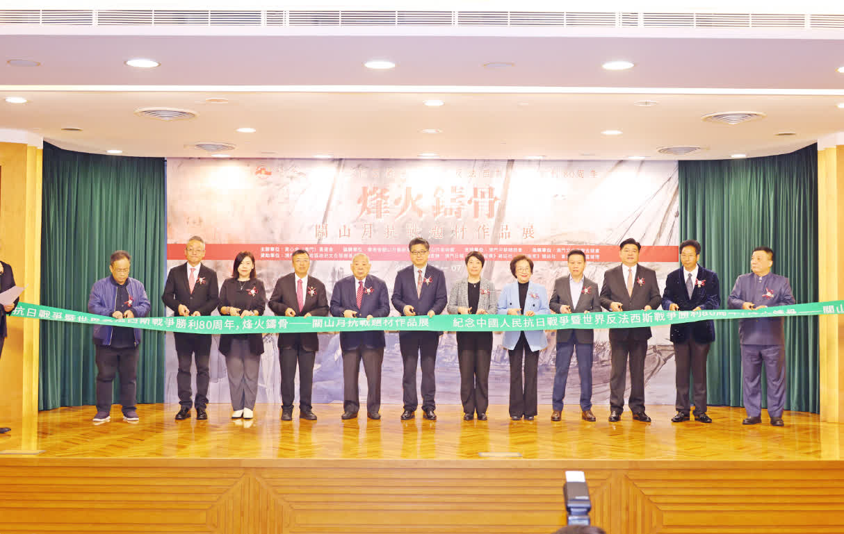 紀念中國人民抗日戰爭暨世界反法西斯戰爭勝利八十周年之「烽火鑄骨——關山月抗戰題材作品展」近日在澳門中華總商會馬萬祺紀念堂開幕。此次展出嶺南畫派代表人物關山月在抗日戰爭時期創作的一系列珍貴作品近50幅,內容涵蓋戰地寫生、流離百姓、愛國志士等主題,深刻記錄烽火連天歲月中,中華民族不屈不撓的精神風骨與歷史記憶,彰顯老一輩藝術家「以筆為戈、藝以報國」的崇高情懷,藉此緬懷先烈、銘記歷史,弘揚偉大抗戰精神。