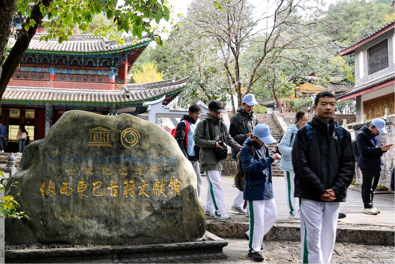 大研古城之北、黑龍潭水畔,雲南省麗江市東巴文化研究院的樓閣飛檐掩映其間。拾級而上,抬眼便看到納西東巴古籍文獻館依山勢排開。走進光碧樓,東巴古籍文獻申遺之路清晰可循;轉入天雨樓,東巴文化的魅力隨着「象形萬物,書載千秋」「卷帙浩繁,百科全書」「保護研究,源遠流長」等章節逐卷展開。