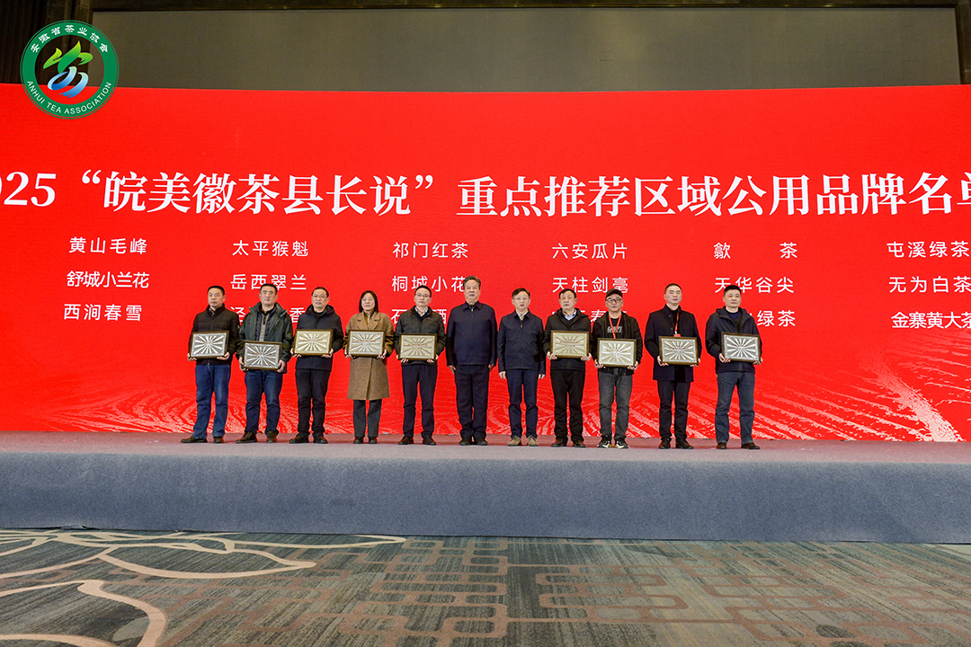 此外,茶會現場還發布2025「皖美徽茶縣長說」重點推薦區域公用品牌名單和重點推薦茶葉企業名單,黃山毛峰、太平猴魁、祁門紅茶、六安瓜片、歙茶、屯溪綠茶、舒城小蘭花等入選。現場亦舉行了「安徽最美茶旅線路合作聯盟」召集人證書頒發儀式和新晉成員授牌儀式,歙縣、黟縣、潛山市、無為市成為「安徽最美茶旅線路合作聯盟」成員單位。