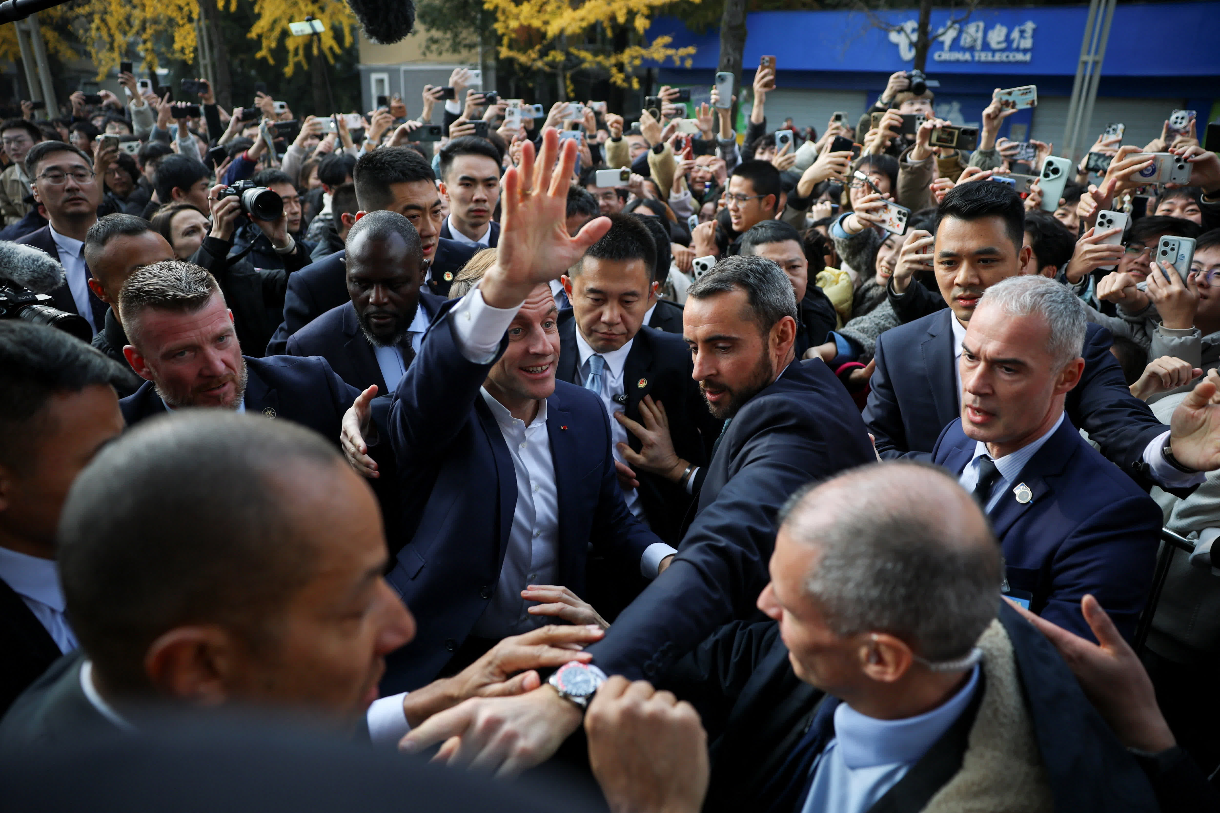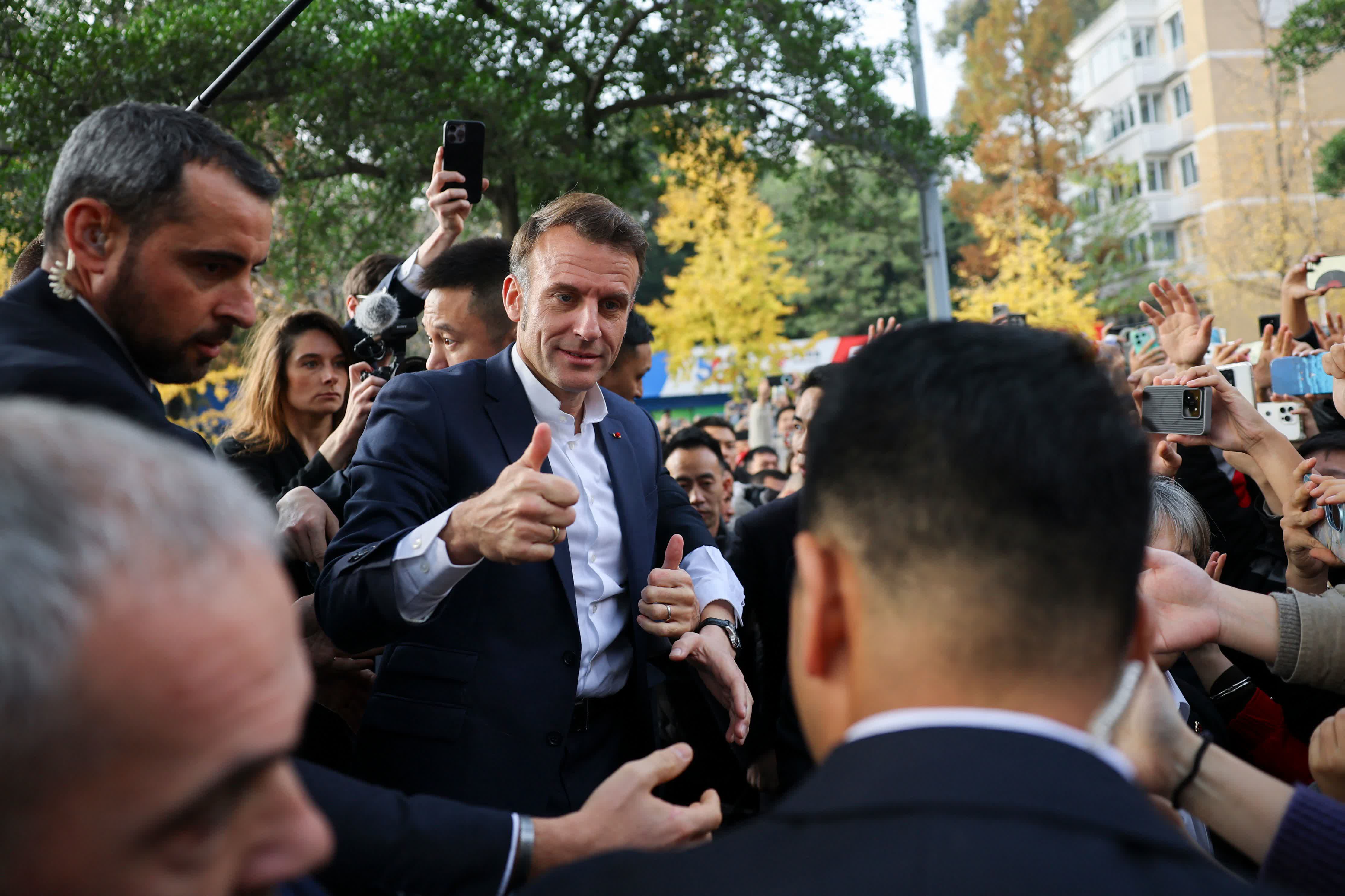 據央視新聞報道,12月5日下午,法國總統馬克龍在成都訪問四川大學。