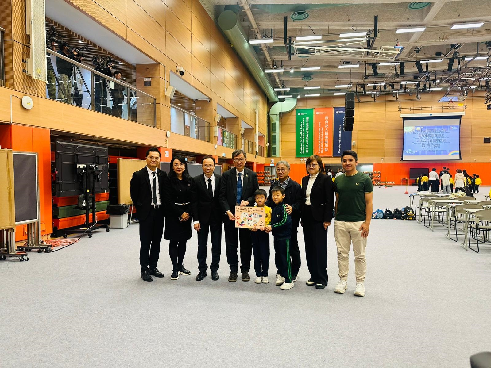 簡報會結束後,與會者一同前往臨時支援中心考察運作情況。期間,有學童親手送上心意卡,向李子建教授及教大團隊表達感謝與支持,場面溫馨感人。
