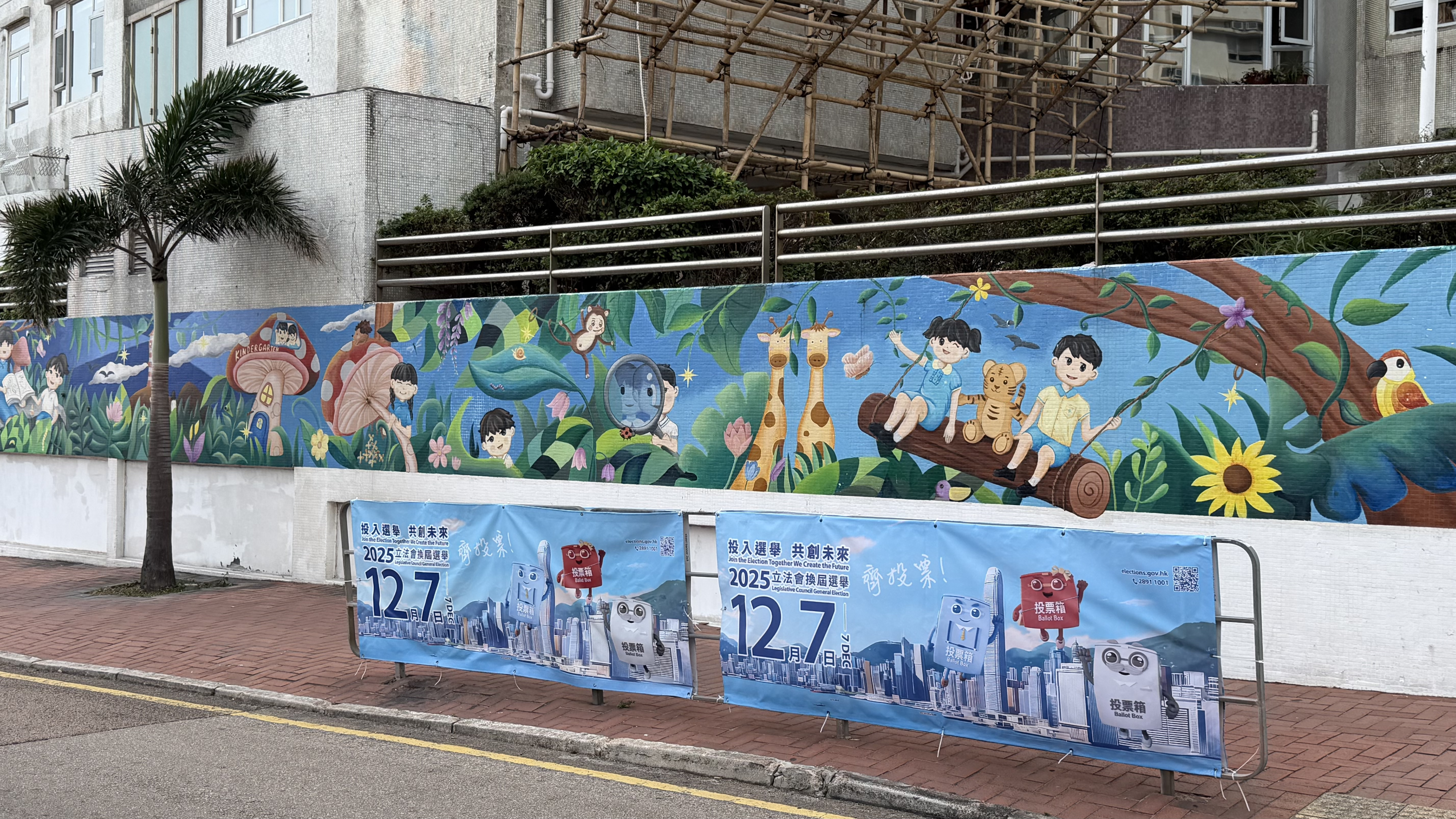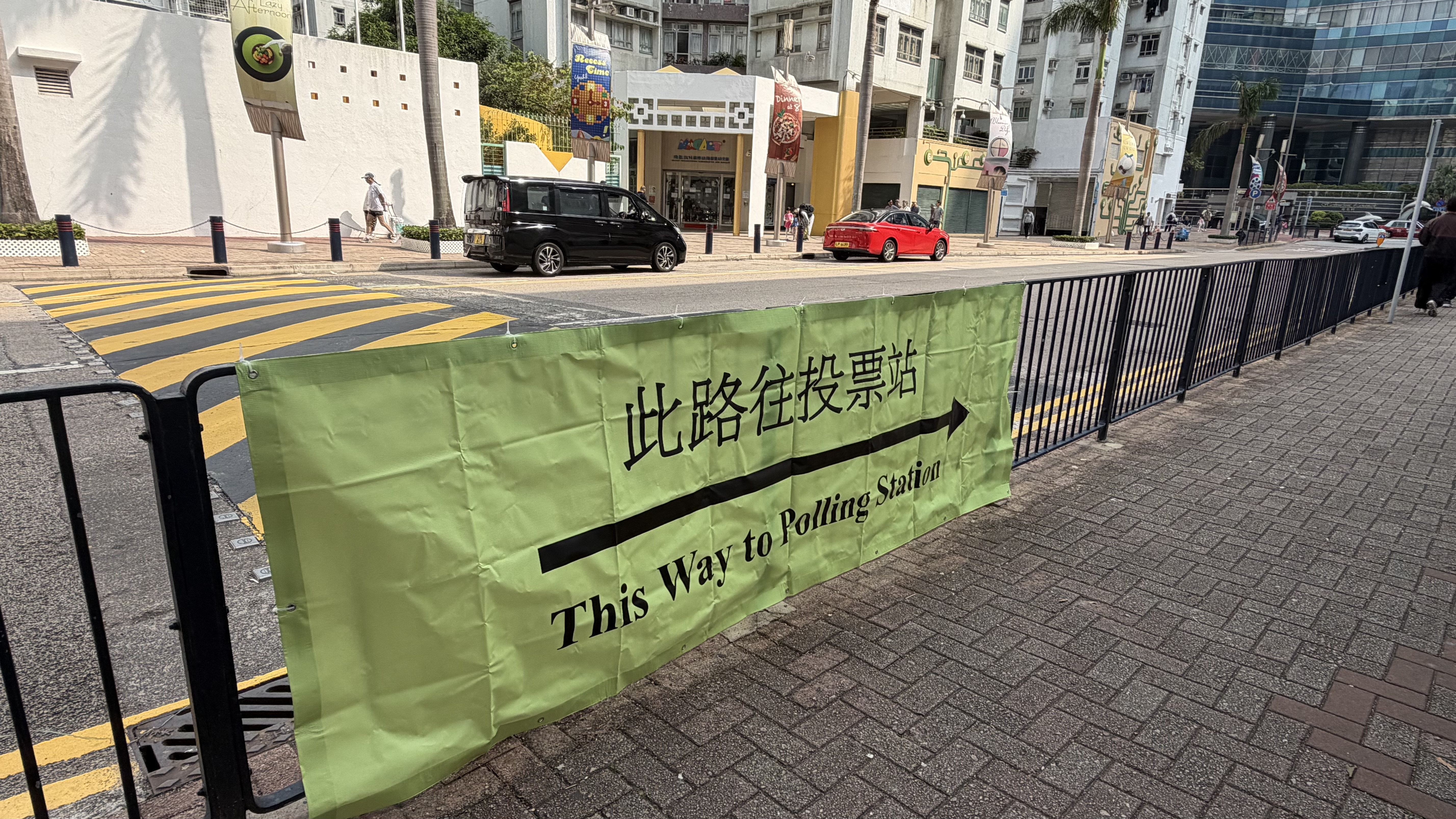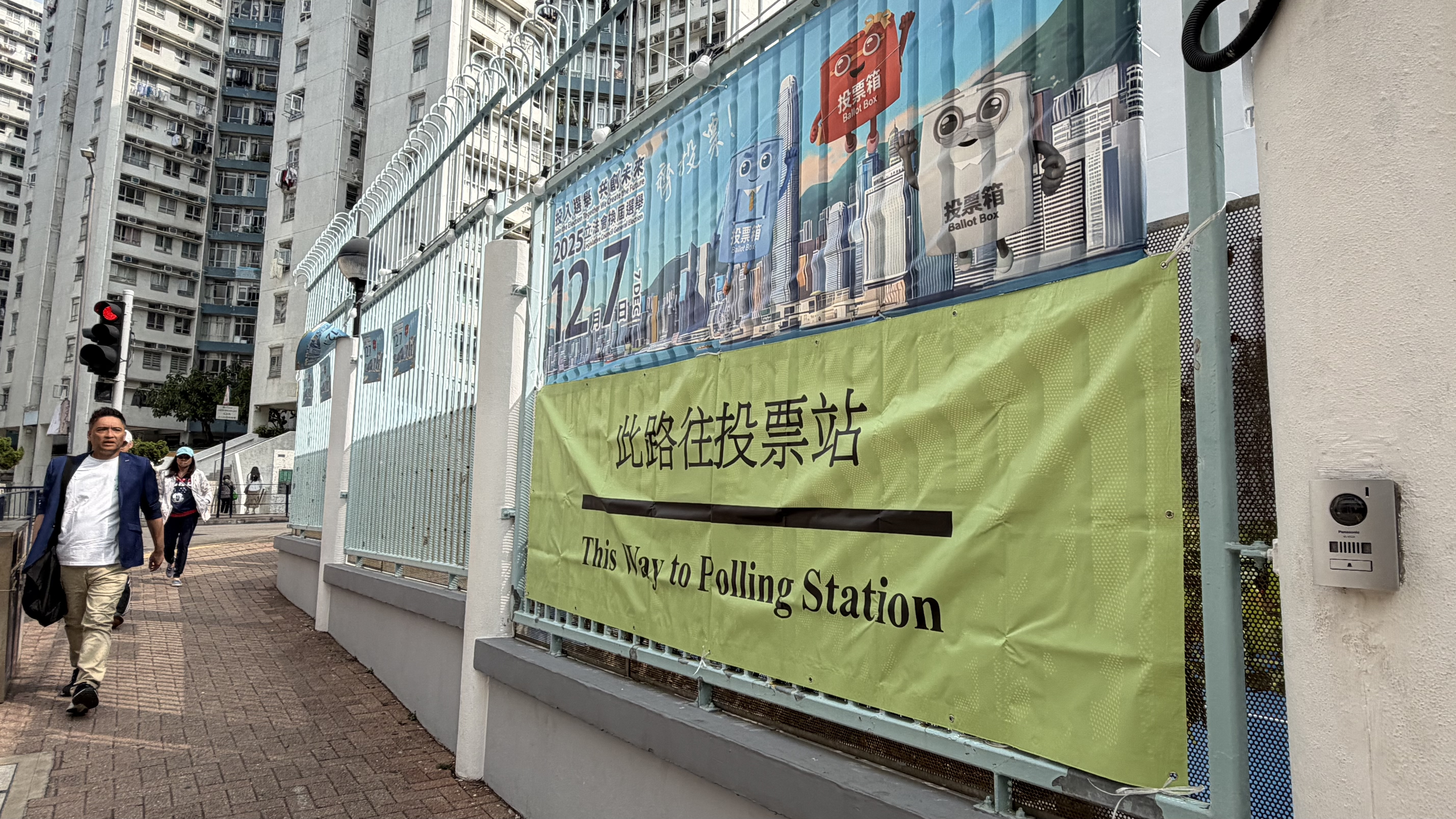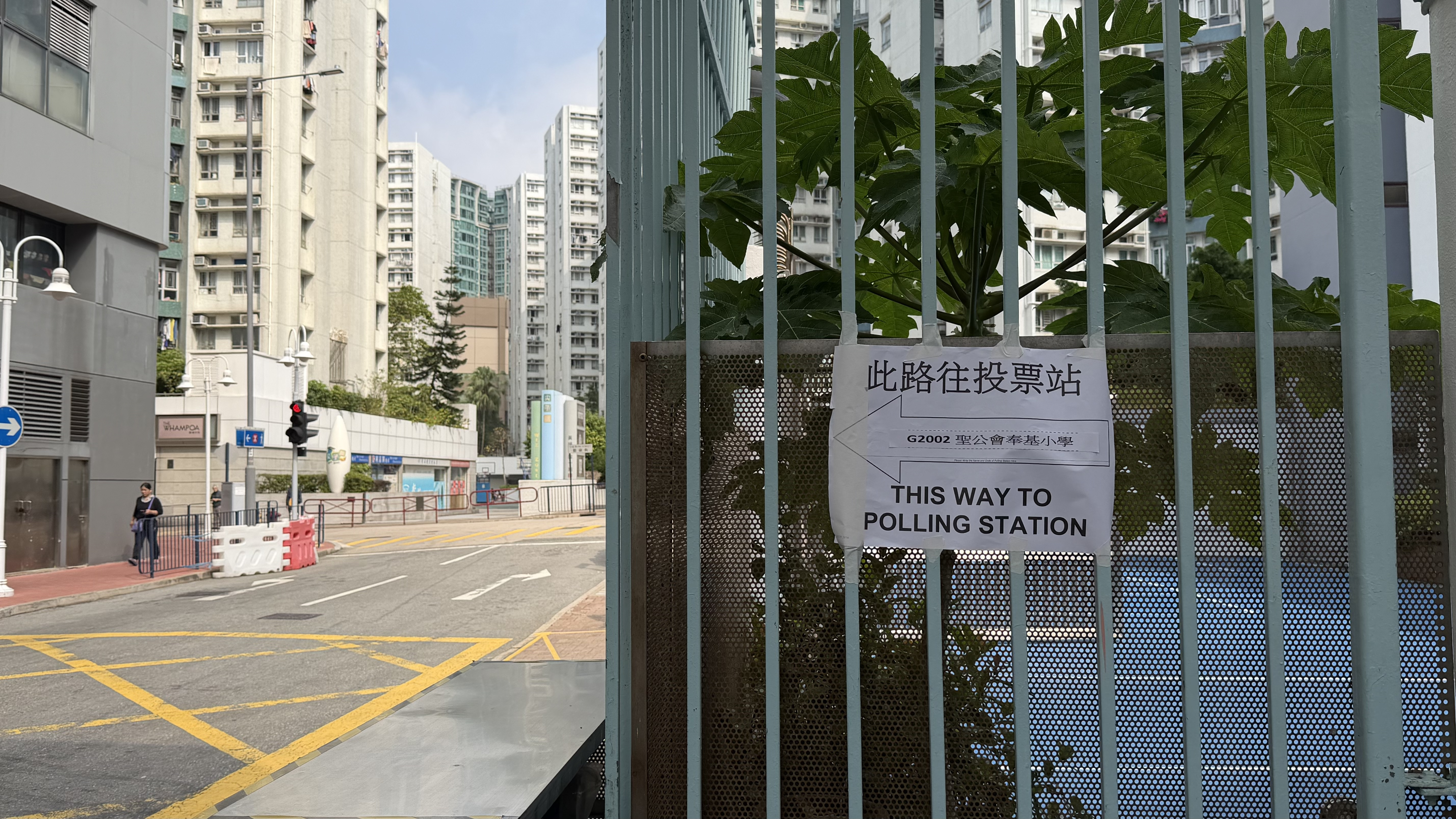 位於九龍城區的幾個票站,包括葛量洪校友會黃埔學校、聖公會奉基小學的門口已經拉好橫幅,橫幅寫有「立法會換屆選舉投票站」字樣,站票附近都有箭頭指示標語,有票站職員在布置現場。