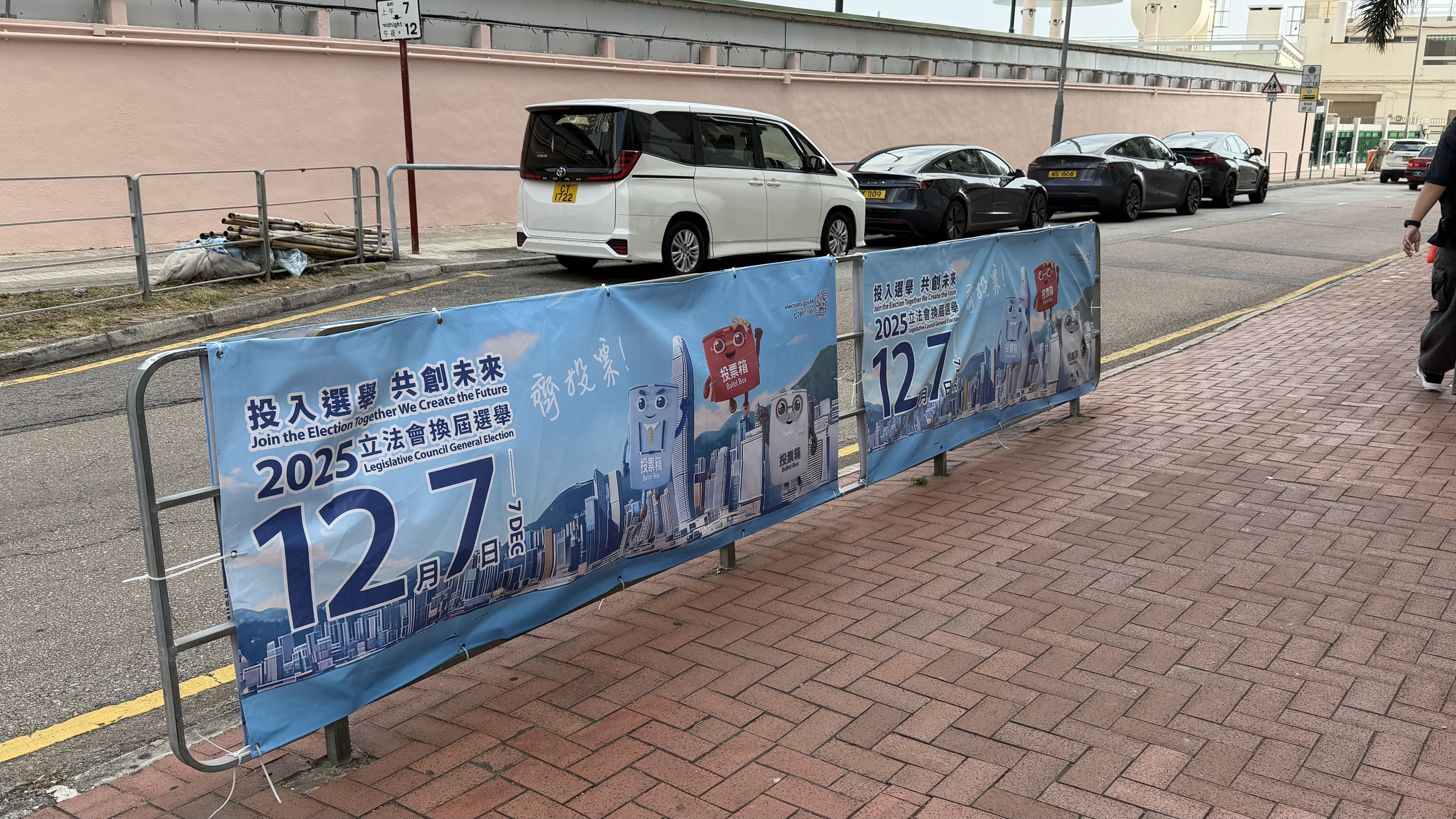 市區街道四周都掛有宣傳單張,呼籲選民積極投票。