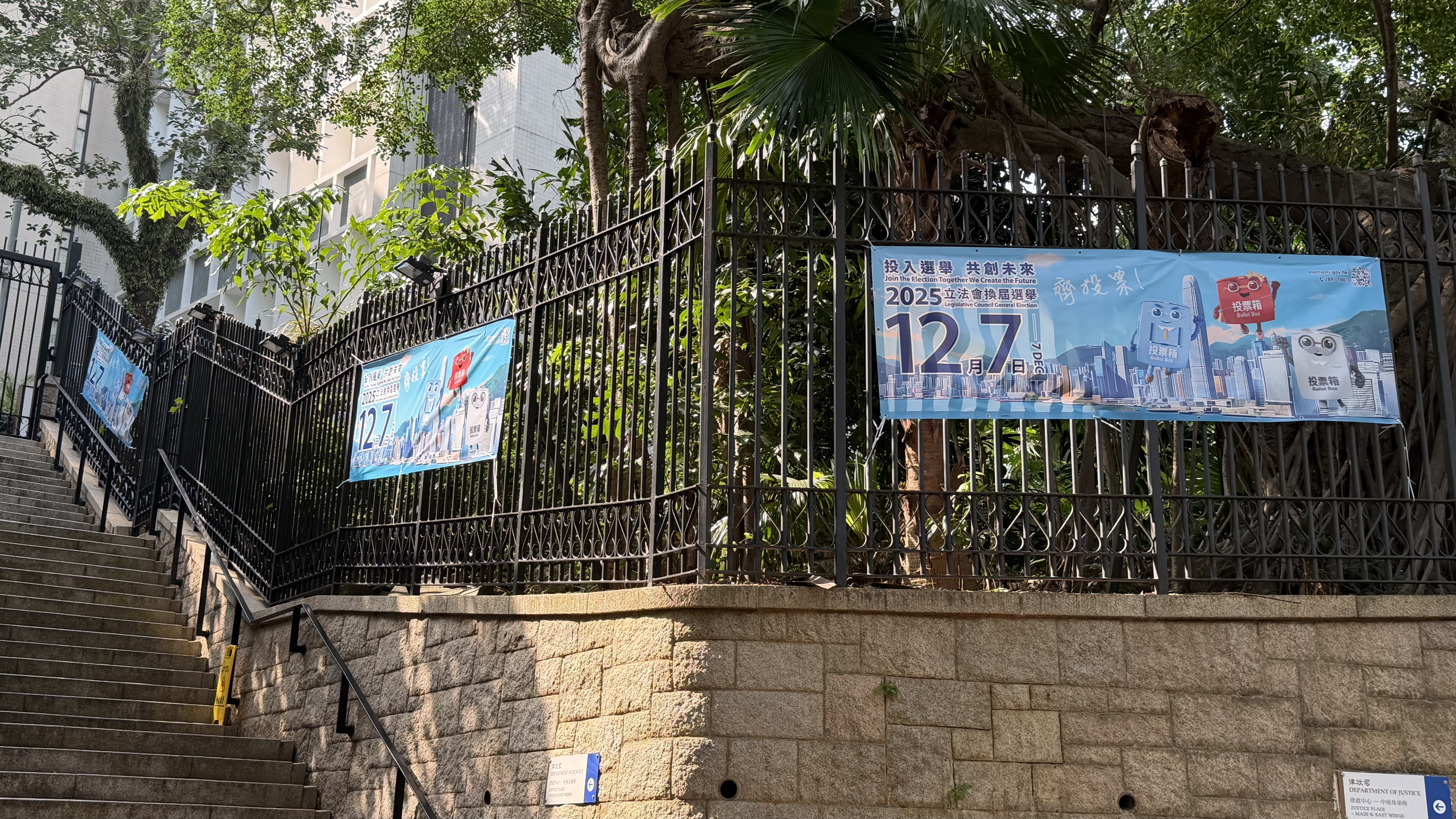 位於中環的長江公園內部,同樣掛有宣傳橫幅。