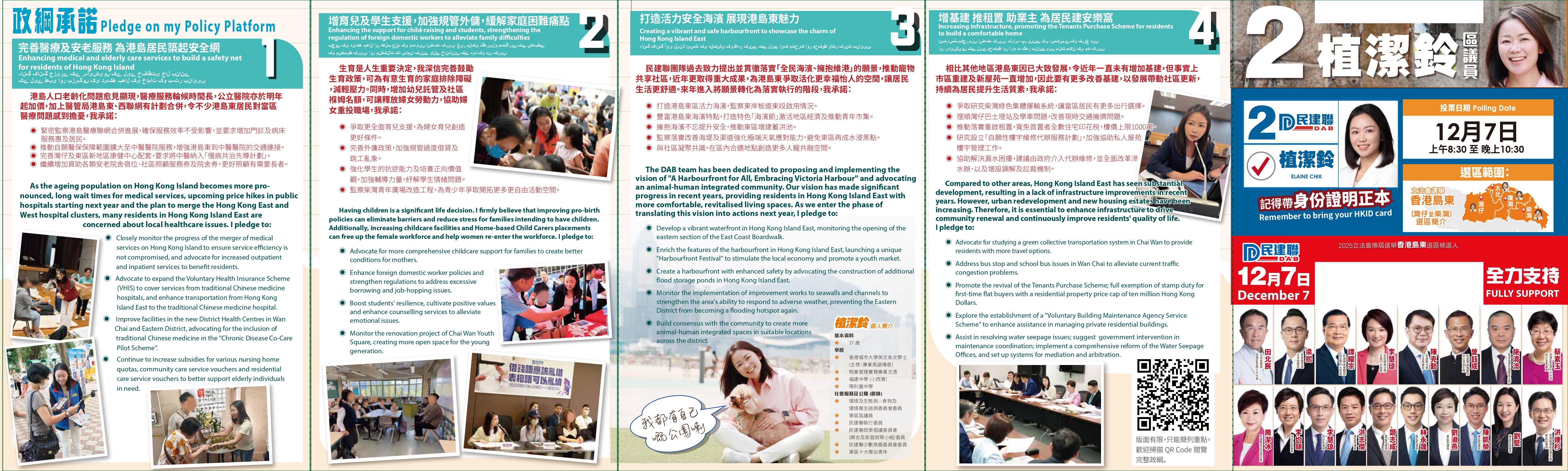 大公文匯全媒體報道,12月7日是第八屆立法會選舉投票日,各地區候選人利用最後的機會,力爭當區選民支持。大公文匯全媒體繼續以交通、經濟及青年發展為重點,整理港島東五位候選人的政綱理念,以方便選民選出賢能治港者。