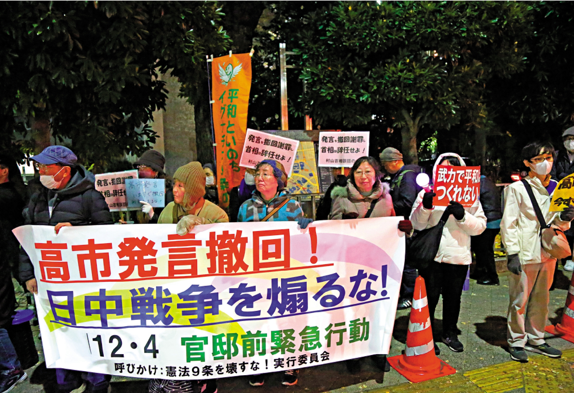 •高市步入政壇以來,就以歷史修正主義「旗手」揚名。質疑「村山談話」,否認南京大屠殺,參拜靖國神社……在此歪曲歷史認知的延長線上,高市對台灣問題背後沉重的中日近代慘痛歷史無感,對日本在台灣殖民統治期間犯下的纍纍罪行無感,對14億中國人民對台灣問題不容外力插手的決心無感。