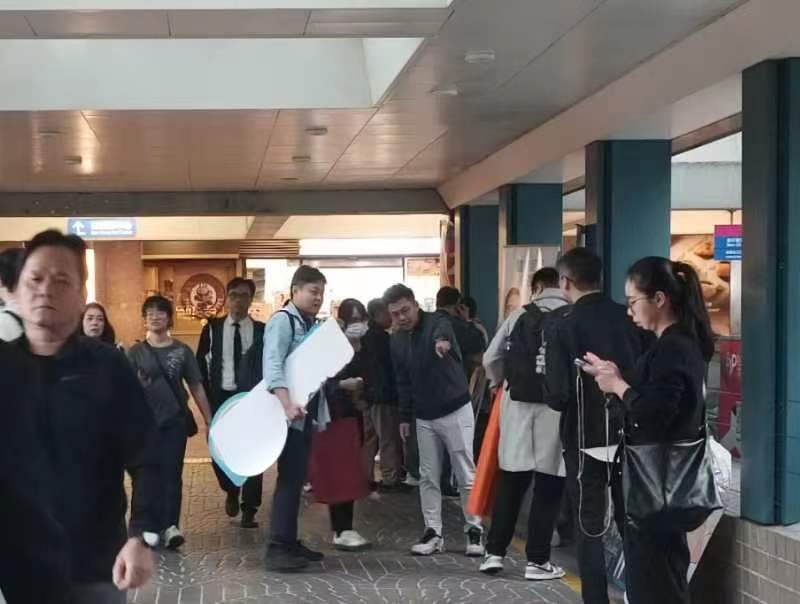 記者在會展三樓的選舉委員會界別投票站看到,陸續有選民前往投票。另外,亦有助選團陸續到達會展中心投票站外天橋,為候選人加油打氣。