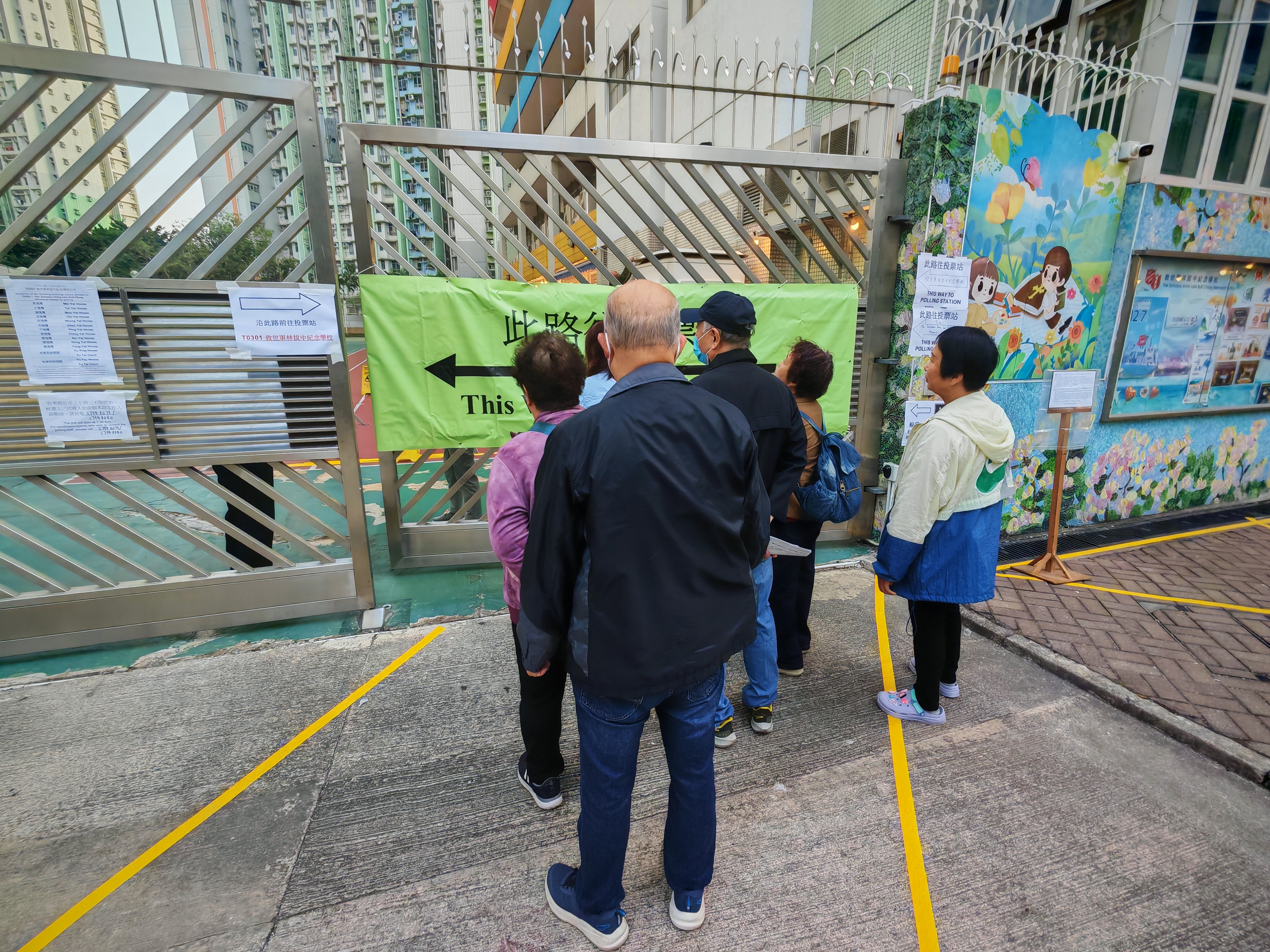 救世軍林拔中紀念學校的投票站,早早就有選民排隊投票。